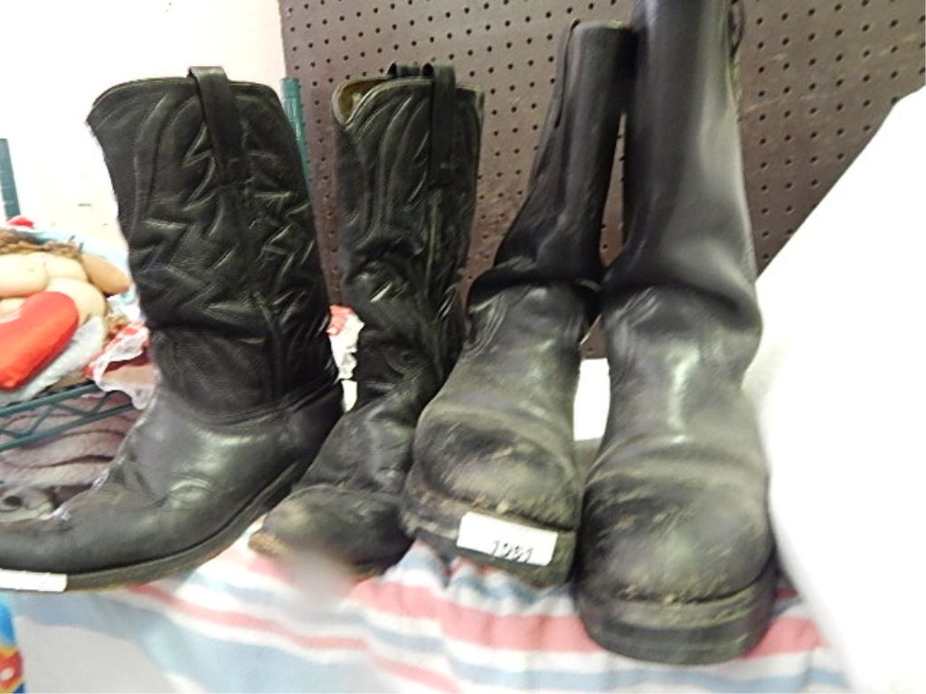 STEEL TOED BOOTS AND COWBOY BOOTS - SIZE 7 MEN OR 9 LADIES