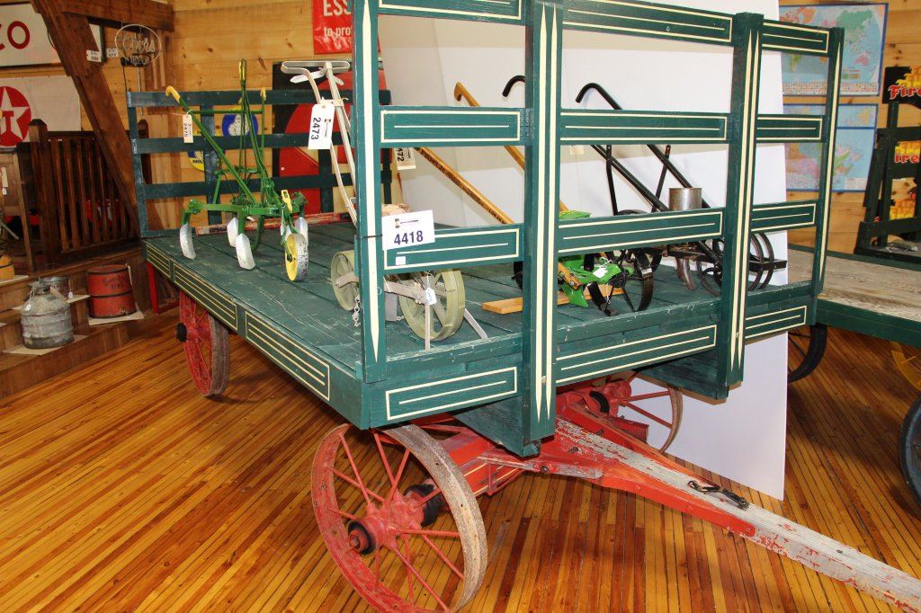 STEEL WHEEL WAGON WITH WOODEN FLAT RACK