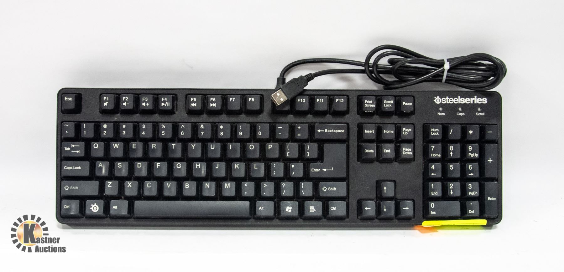 STEELSERIES MECHANICAL KEYBOARD, USED, ALL KEYS WORK. **ALL ITEMS MUST BE REMOVED BY 5PM SATURDAY, NOVEMBER 25TH 2023. ALL REMAINING ITEMS WILL BE SUBJECT TO A $6.00 PER DAY STORAGE CHARGE. ANY ITEMS REMAINING AFTER MONDAY, DECEMBER 11TH, 2023 WILL BE CONSIDERED FORFEITED. NO REFUNDS WILL BE ISSUED FOR FORFEITED ITEMS. TO SCHEDULE A PICK UP APPOINTMENT CLICK HERE