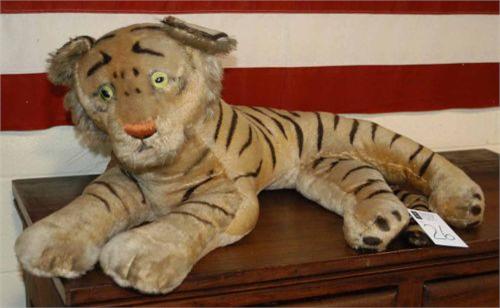 "STEIFF TIGER 30"" long excluding tail, tail loose, nearly detached packing and shipping (excluding insurance) $30"