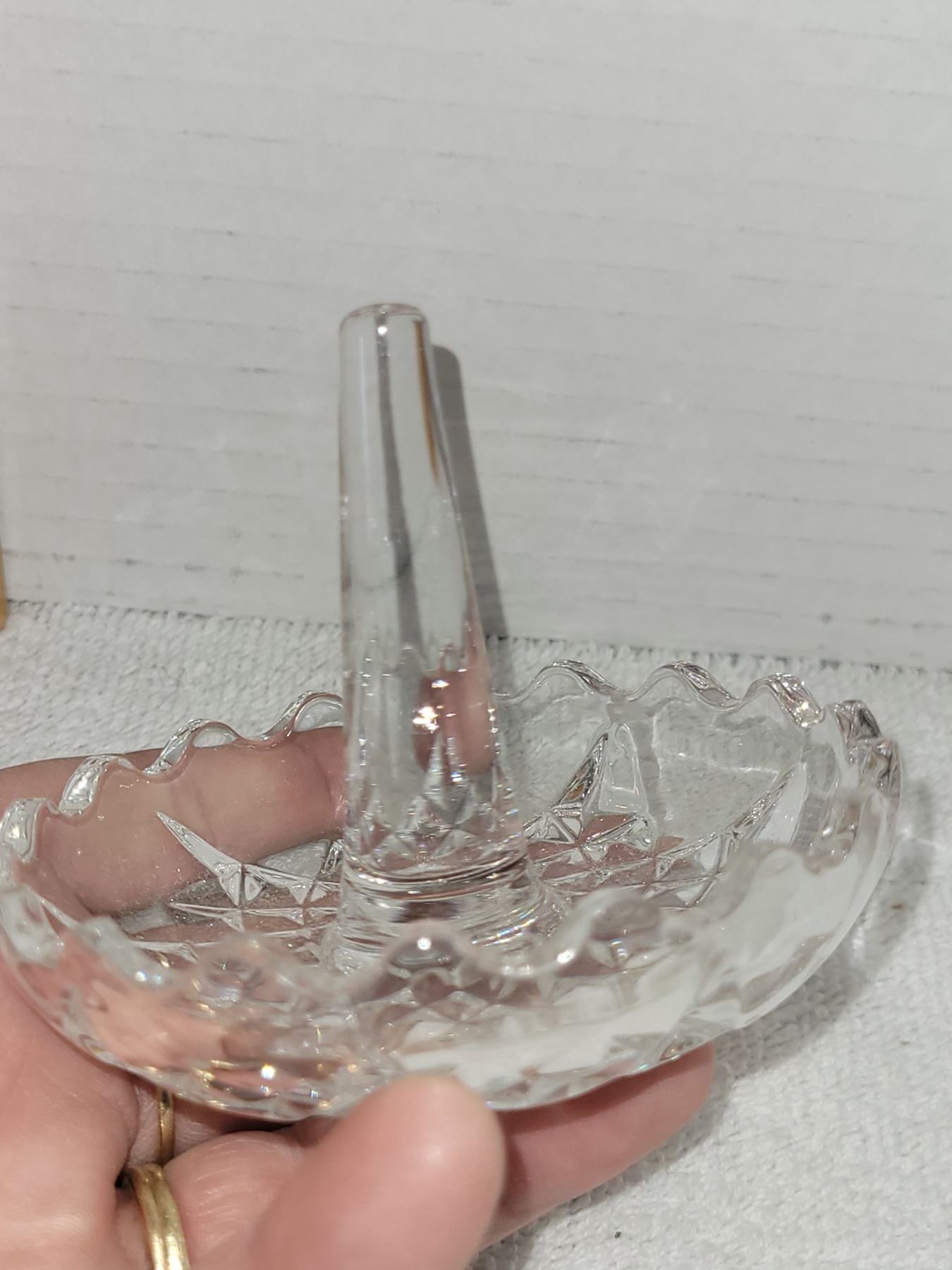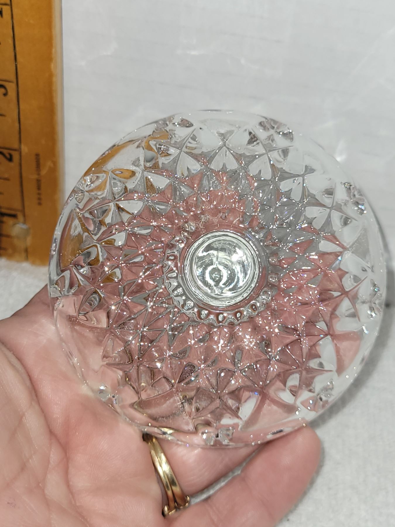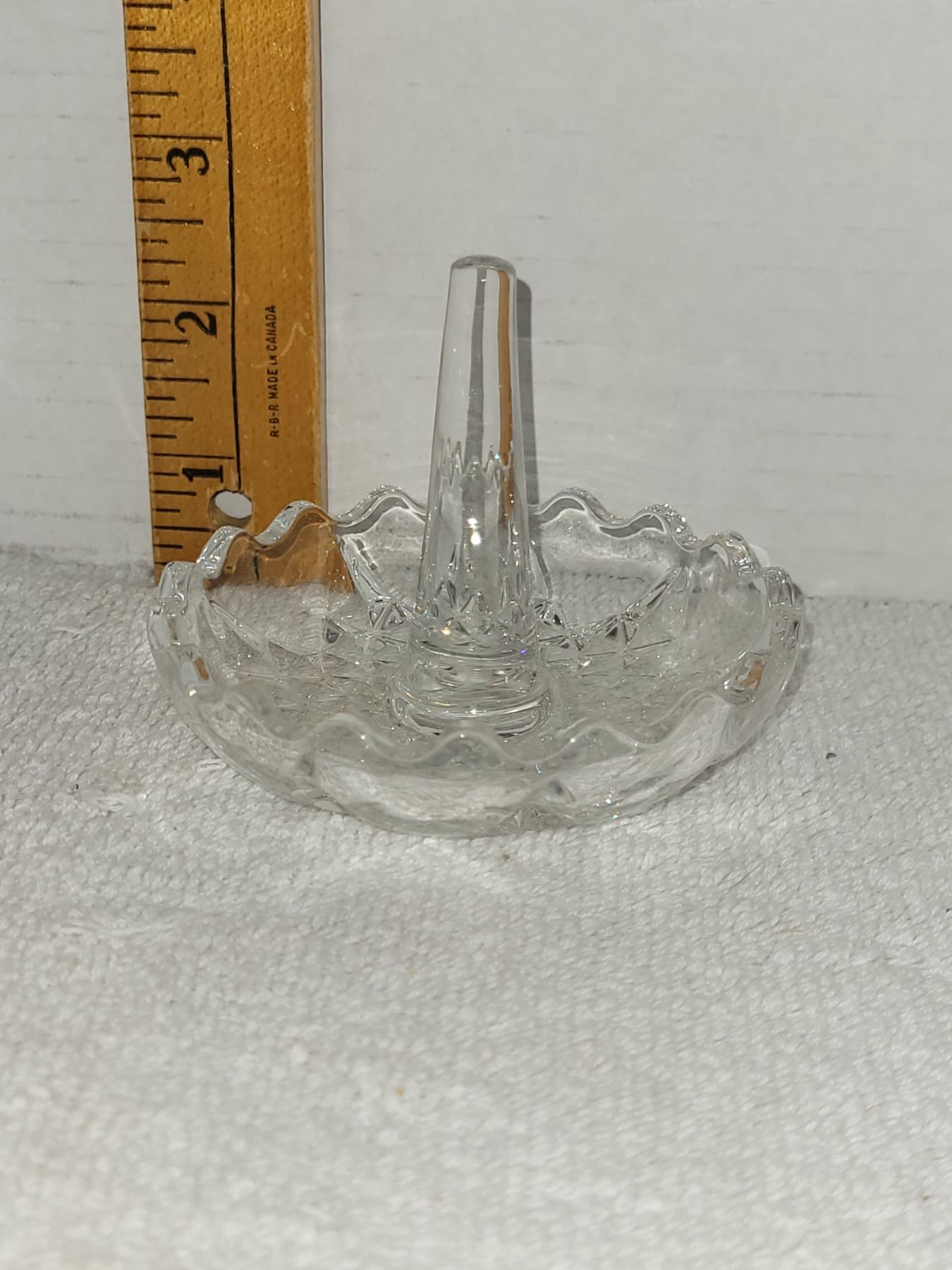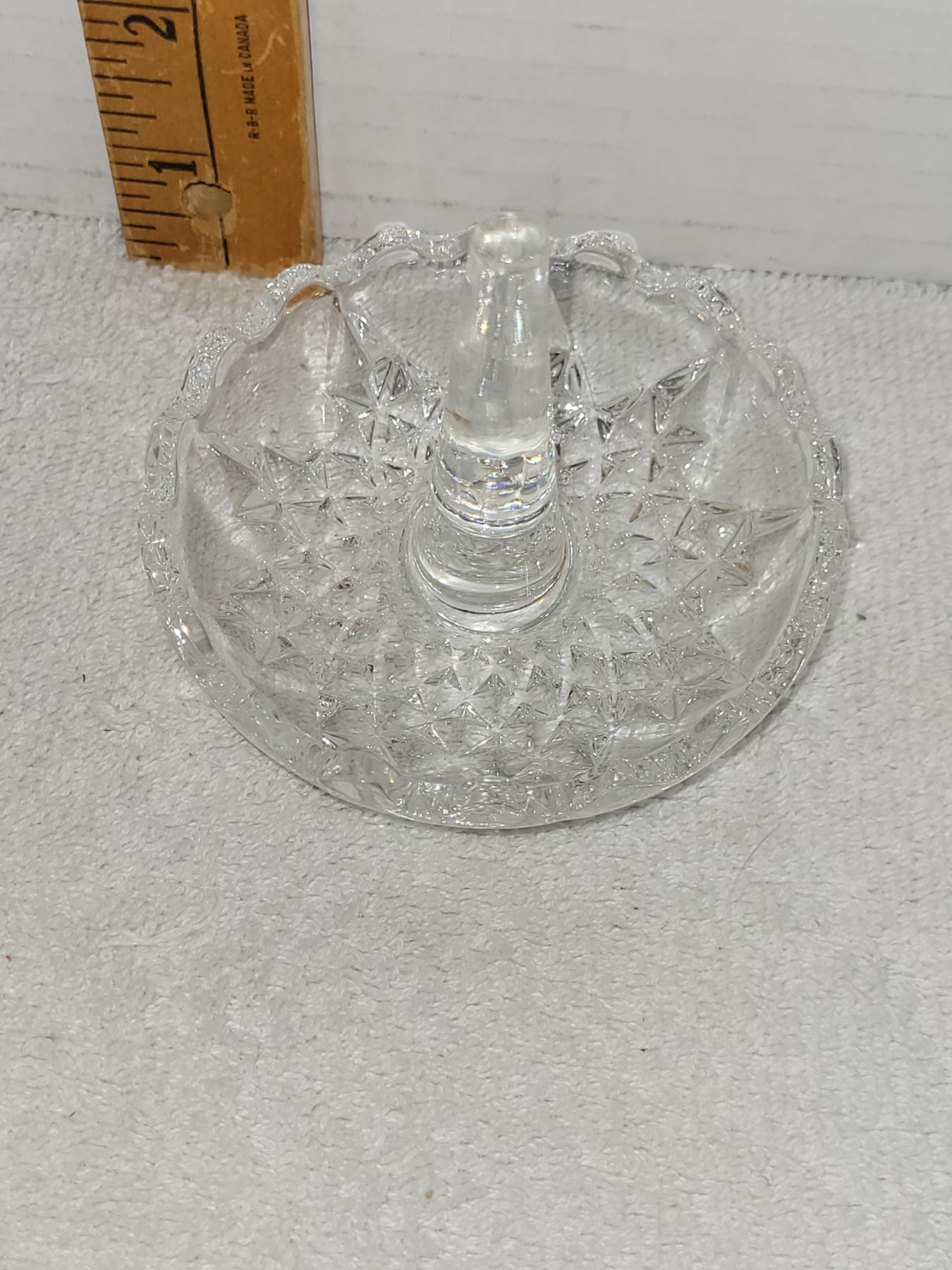 STEMMED CRYSTAL RING HOLDER. MEASURES 3.5" X 3.5"