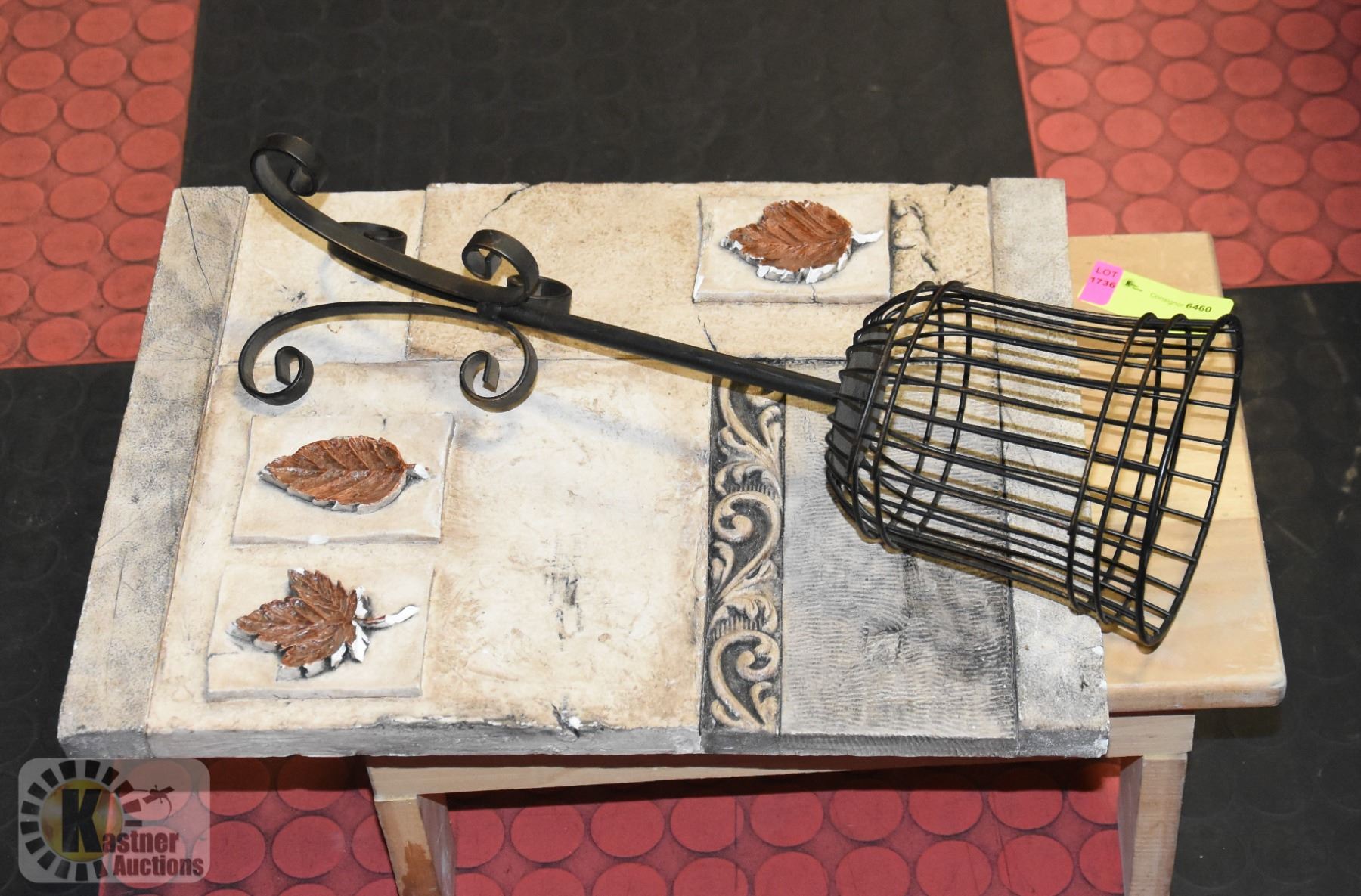 STEP STOOL WITH STONE PICTURE AND CANDLE HOLDER