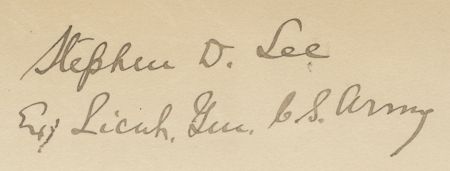 (1833-1908) Confederate Lieutenant General who directed artillery at Second Bull Run and Antietam, later led a corps at Atlanta and in the Carolinas. Bold signature on a card: "Stephen D. Lee...Lieut. Gen. C. S. Army". Light toning, otherwise very good.