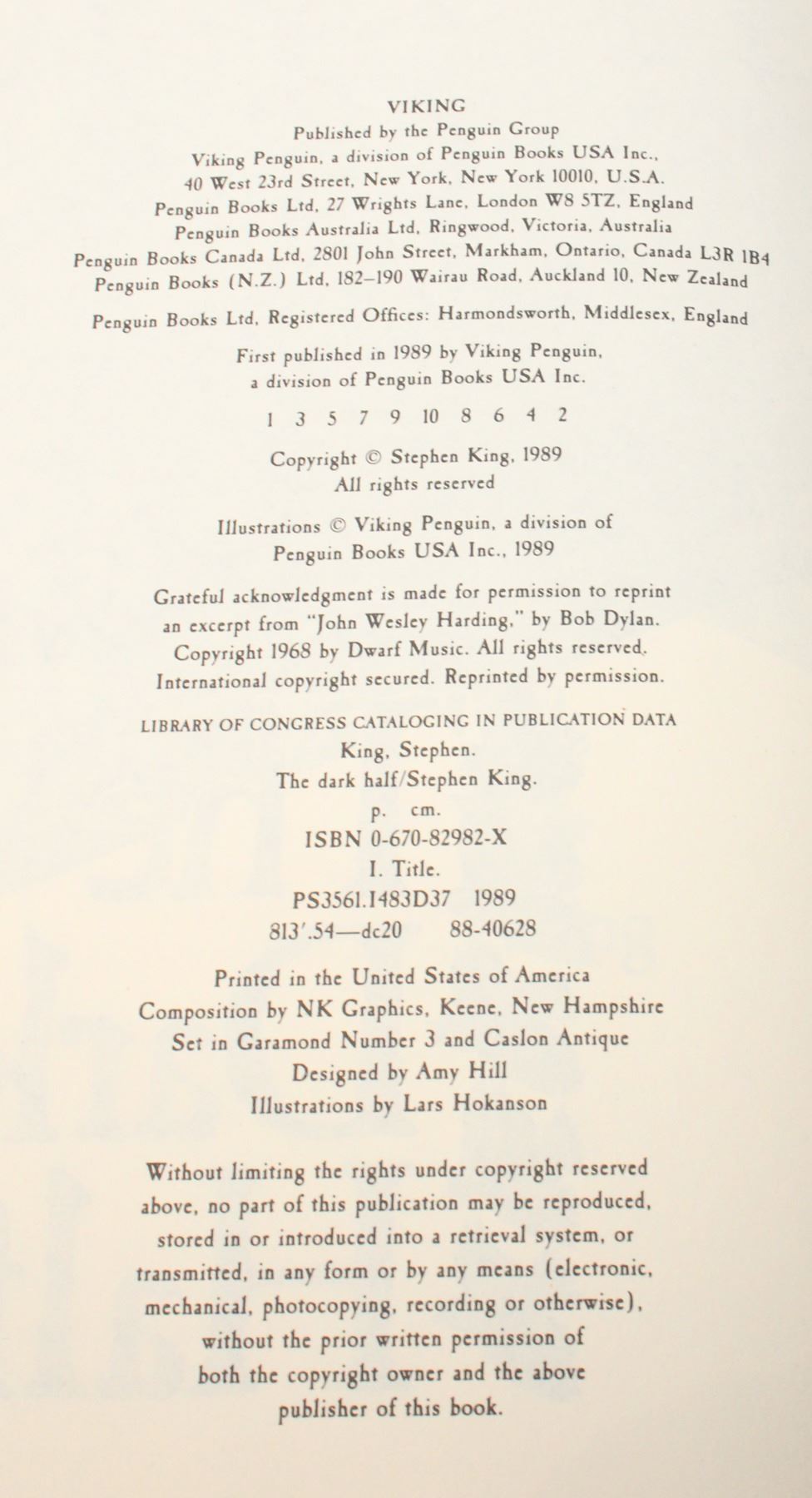 STEPHEN KING THE DARK HALF HARDCOVER BOOK