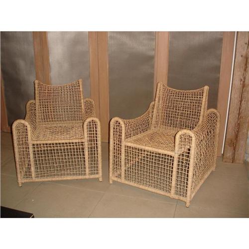 Fishnet Chairs: A Pair: Loosely in the shape of a Wassily chair, but completely executed in a loosely woven fishnet hemp.