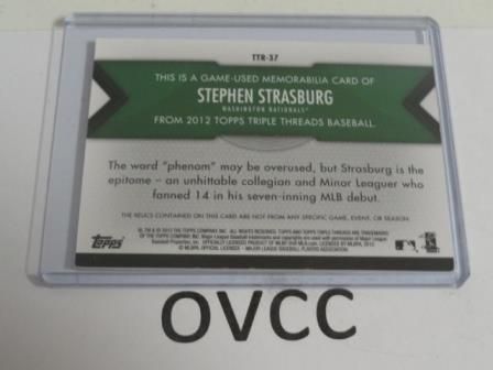 STEPHEN STRASBURG 2012 TOPPS TRIPLE THREADS 6X GAME USED JERSEY 04/18