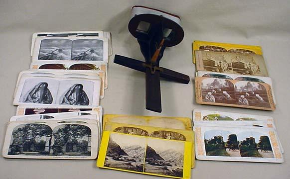 STEREOPTICAN VIEWER AND APPROX. 35 STEREOVIEW CARDS - Incl. Japanese Soldiers, Black Americana, Japan Tea Plantation, More!