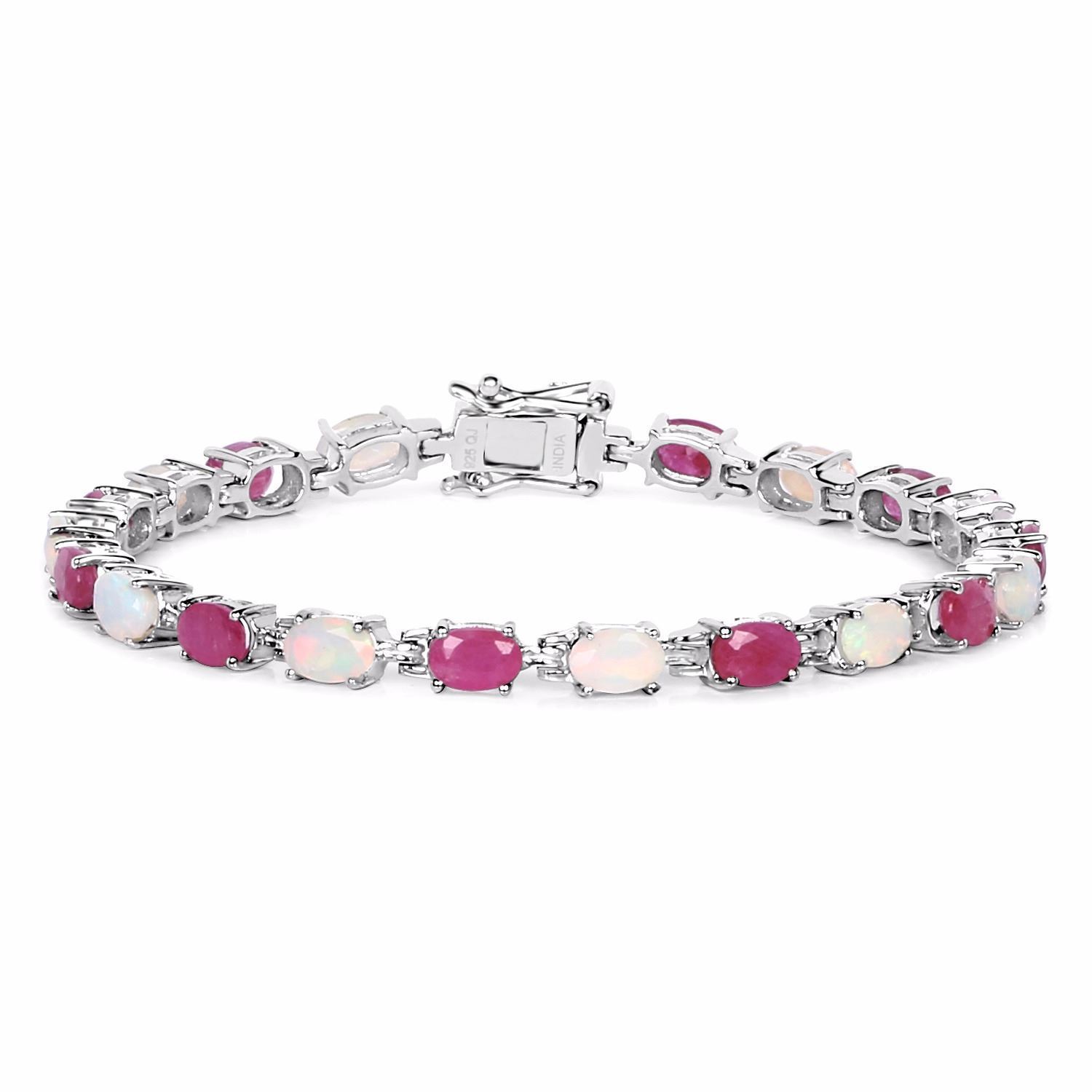 STERLIGN SILVER THAI RUBY AND ETHIOPIAN OPAN BRACELET