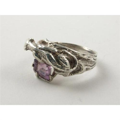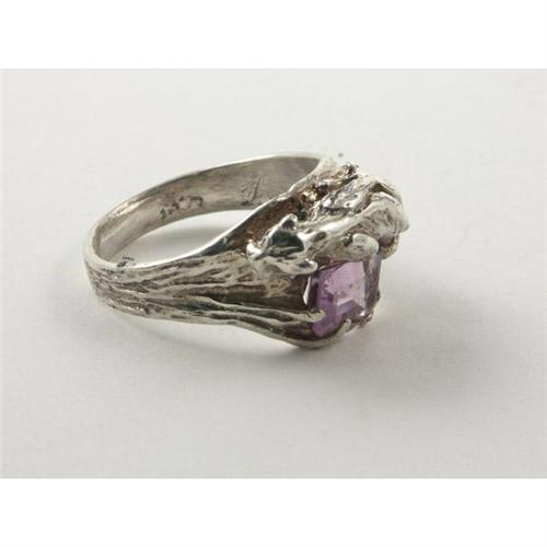 RING: Sterling silver lady's ring set with an amethyst. Panther form setting with a textured surface. There is no appraisal included with this lot.