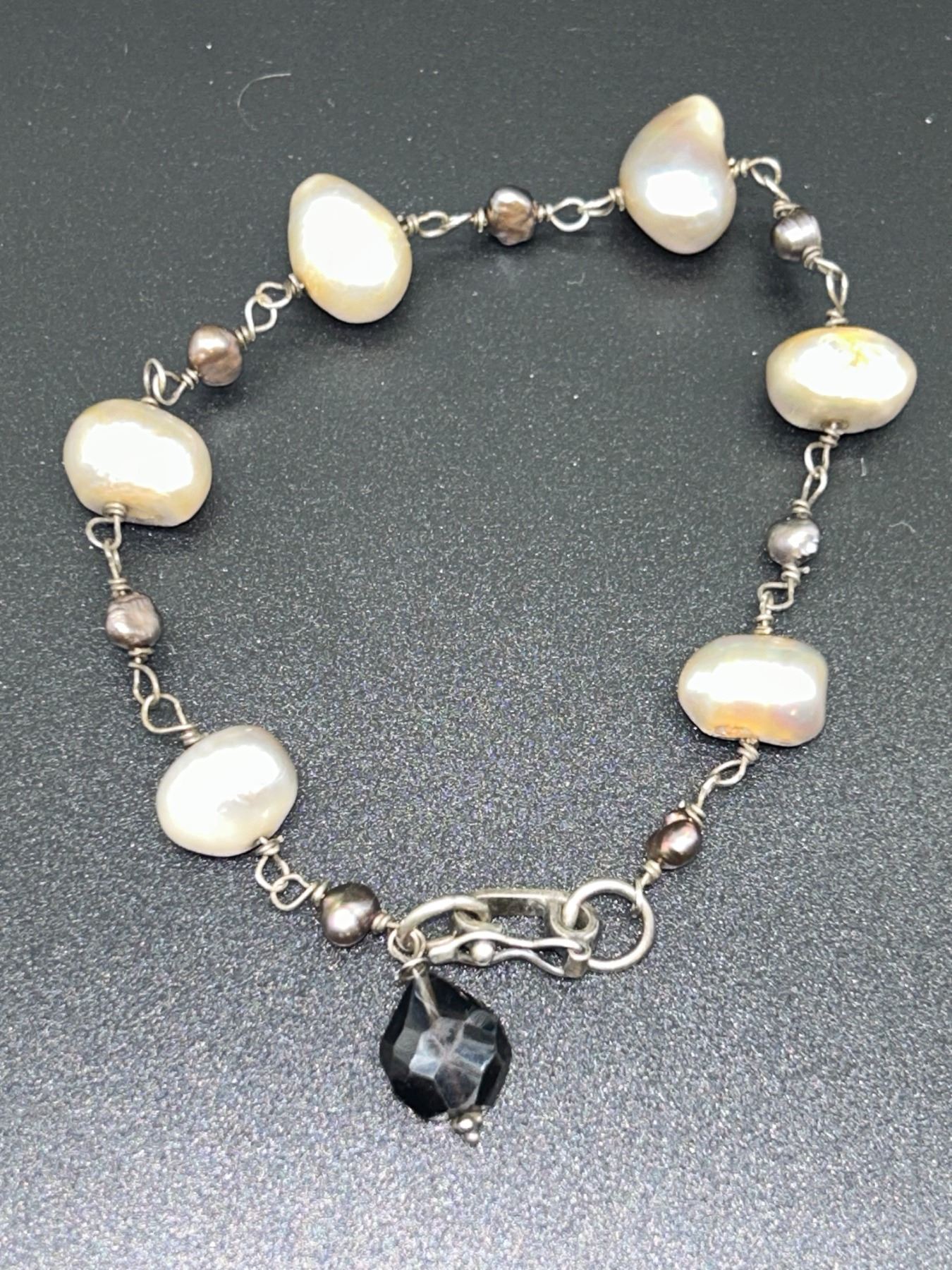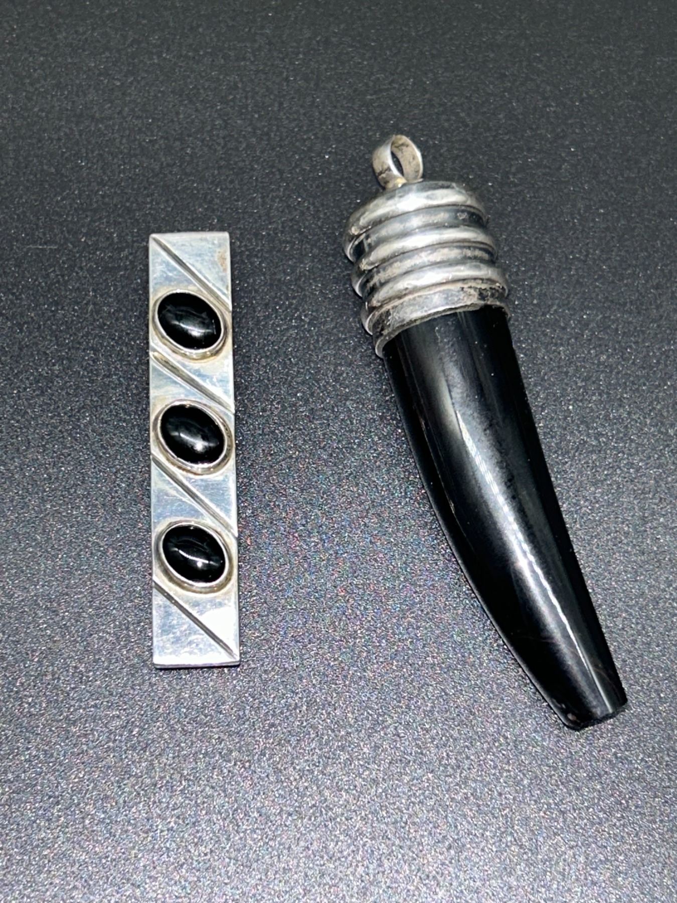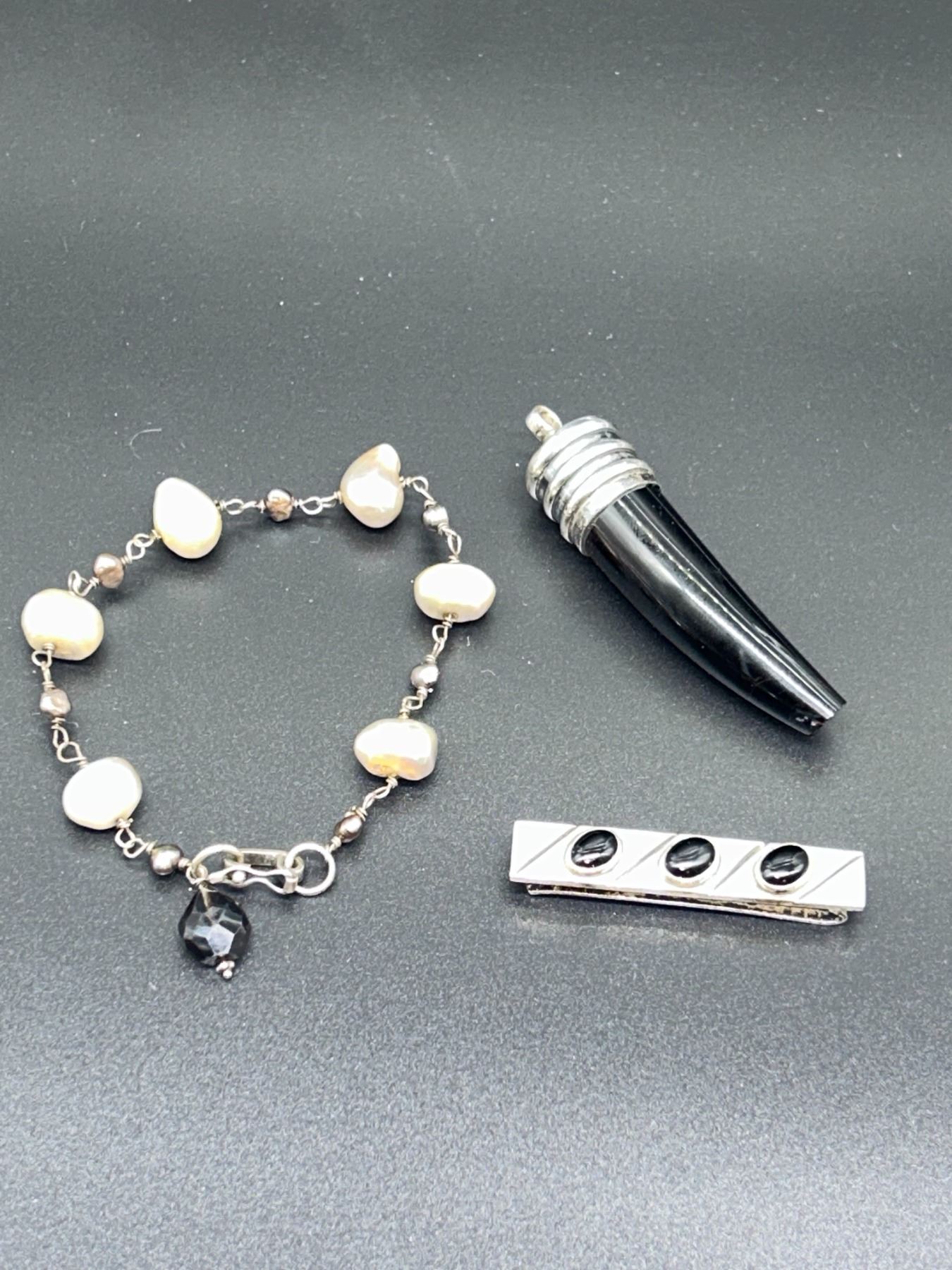 STERLING BLACK ONYX PEARL BRACELET & STERLING MONEY CLIP & PENDANT