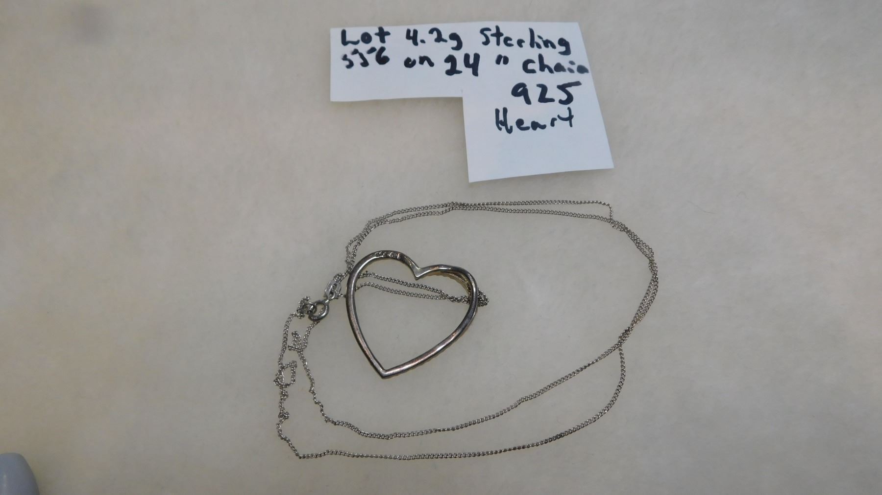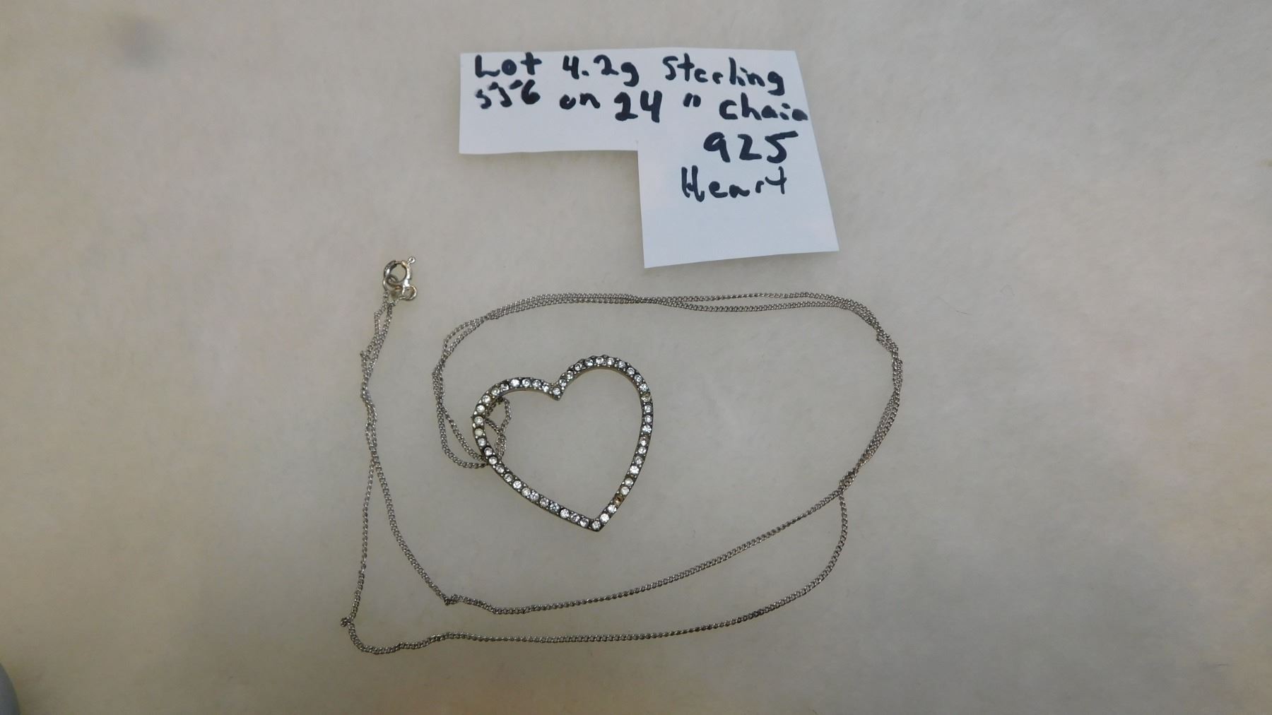 STERLING CHAIN WITH HEART PENDANT, 24” LONG, 4.2g