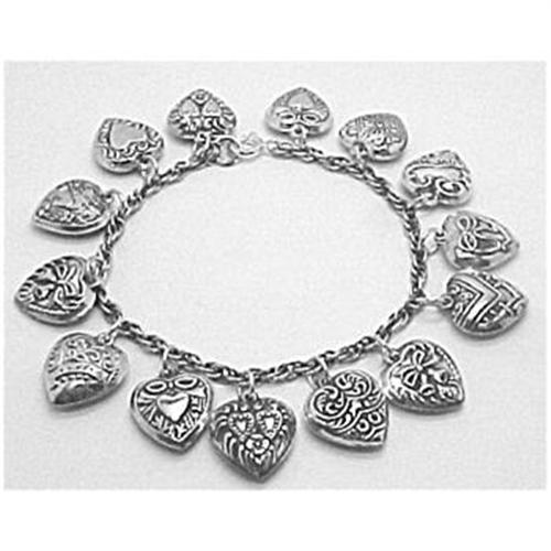 <tr><td>Title: STERLING CHARM BRACELET 14 HEART Charms</td></tr>