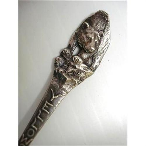 LOVELY ANTIQUE FIGURAL STERLING SOUVENIR SPOON, DEPICTING BEAUTIFUL DETAILED FIGURE OF A BEAR AND SIGNED "YELLOWSTONE PARK", In excellent condition - US Buyer to pay 7.00 for shipping plus insurance.THANKS.