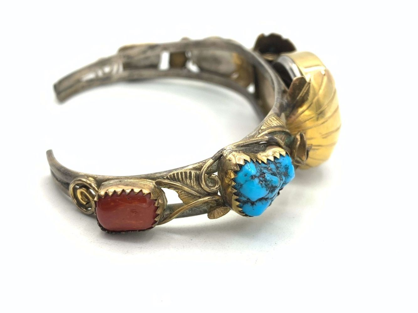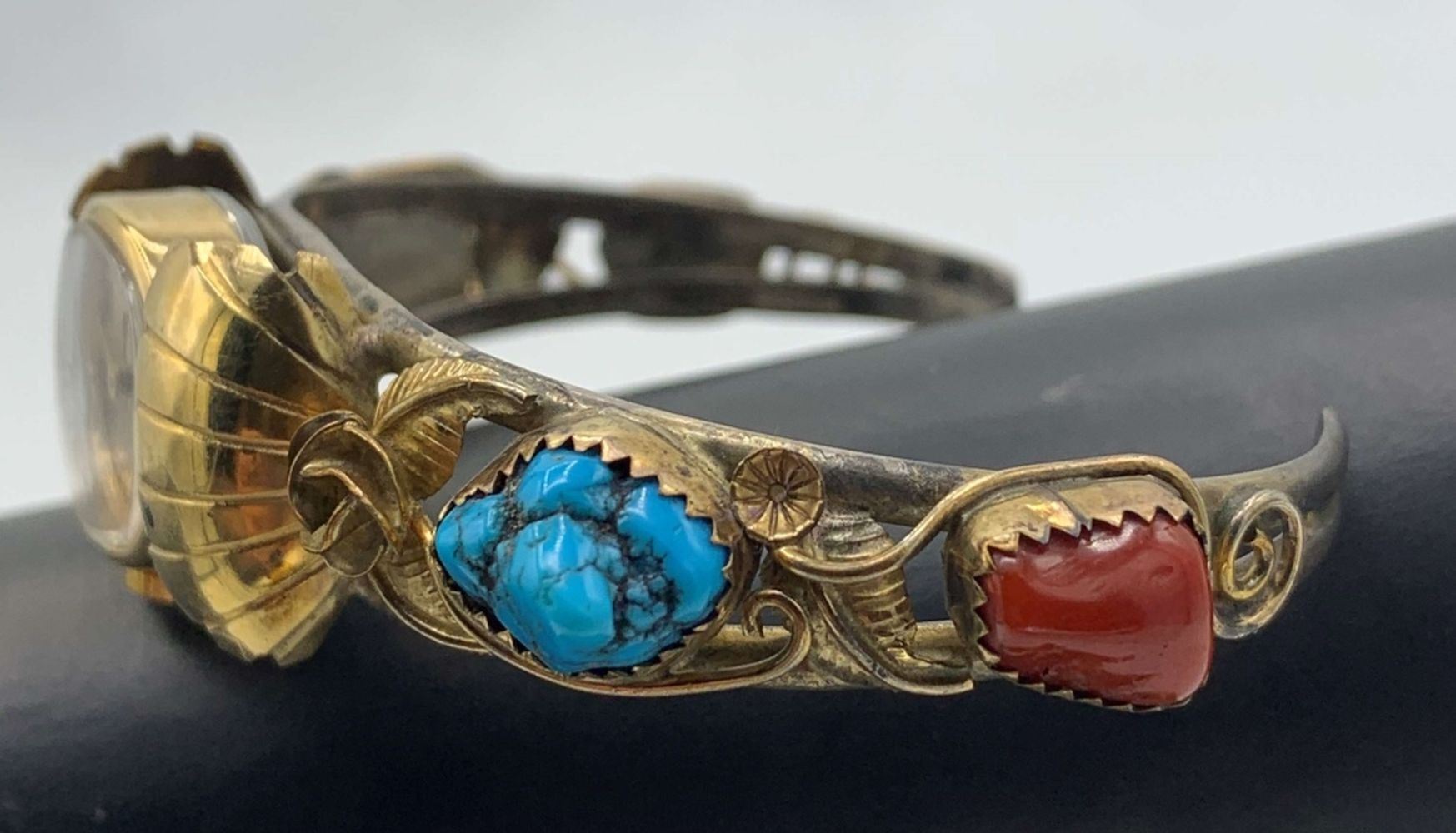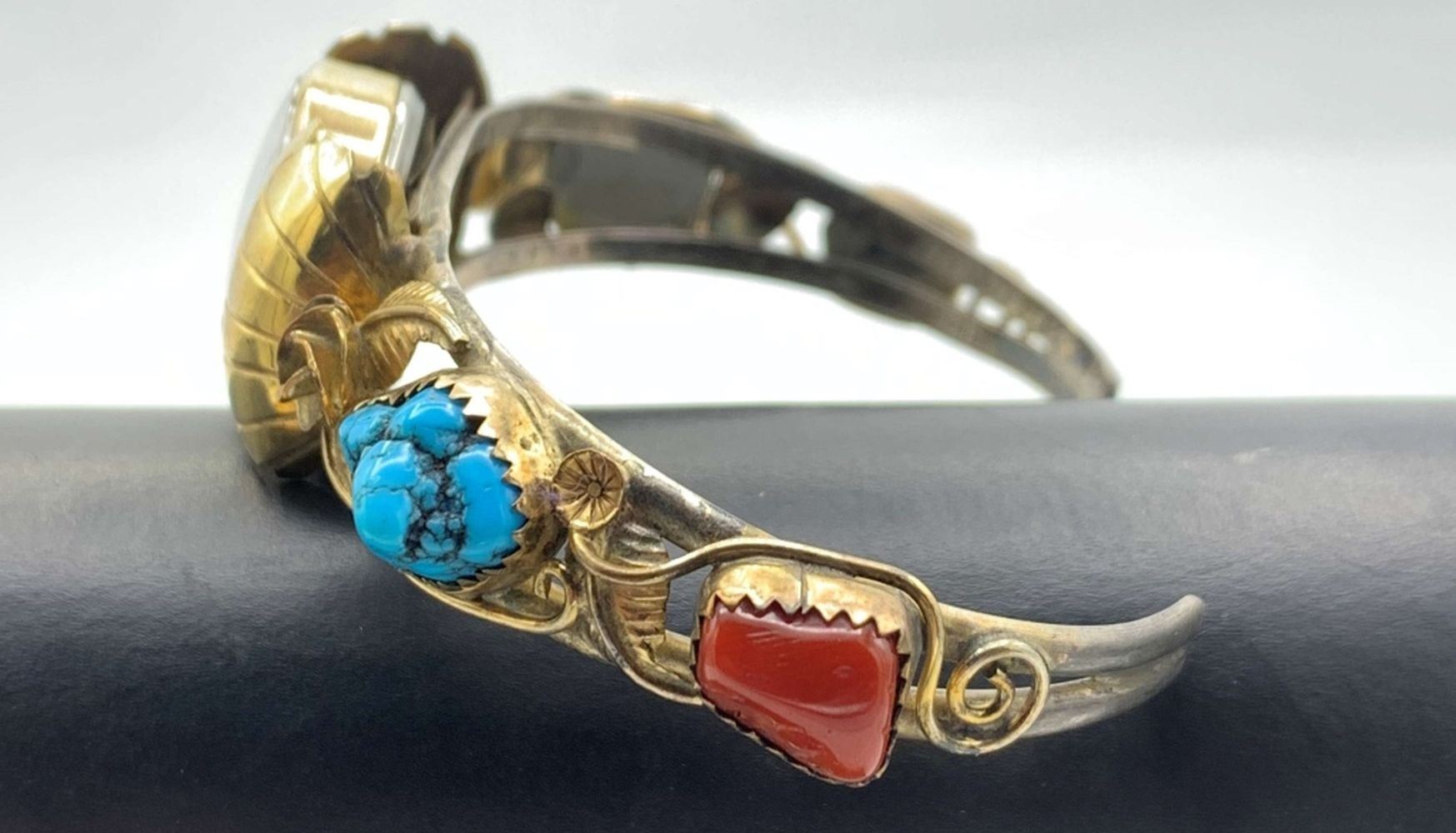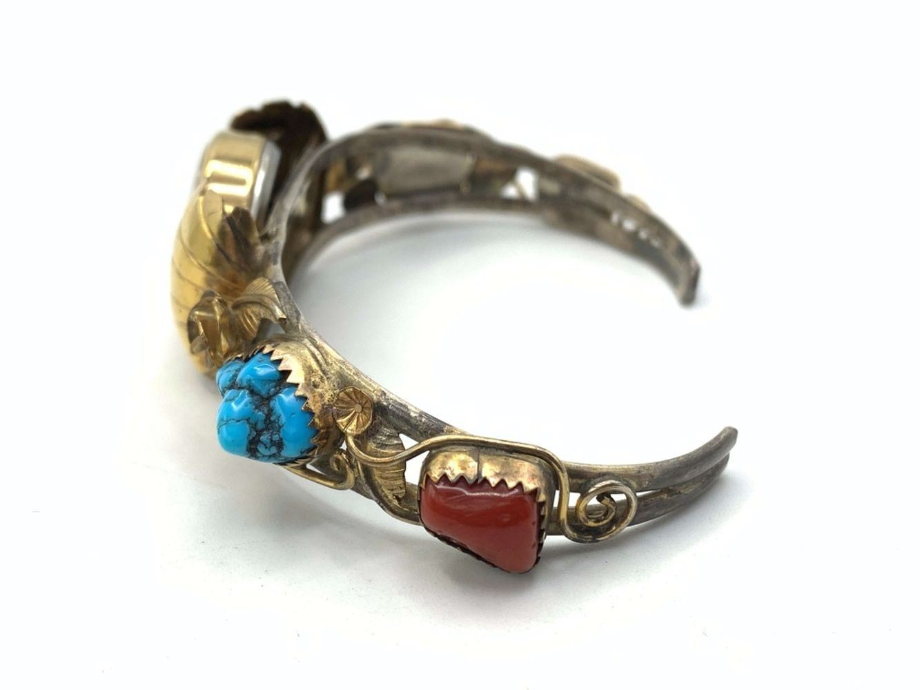 RED CORAL AND TURQUOISE STONE ACCENTS ARE SIDE-GODL FILLED FLORAL ACCENTS. 16.4 DWT TOTAL