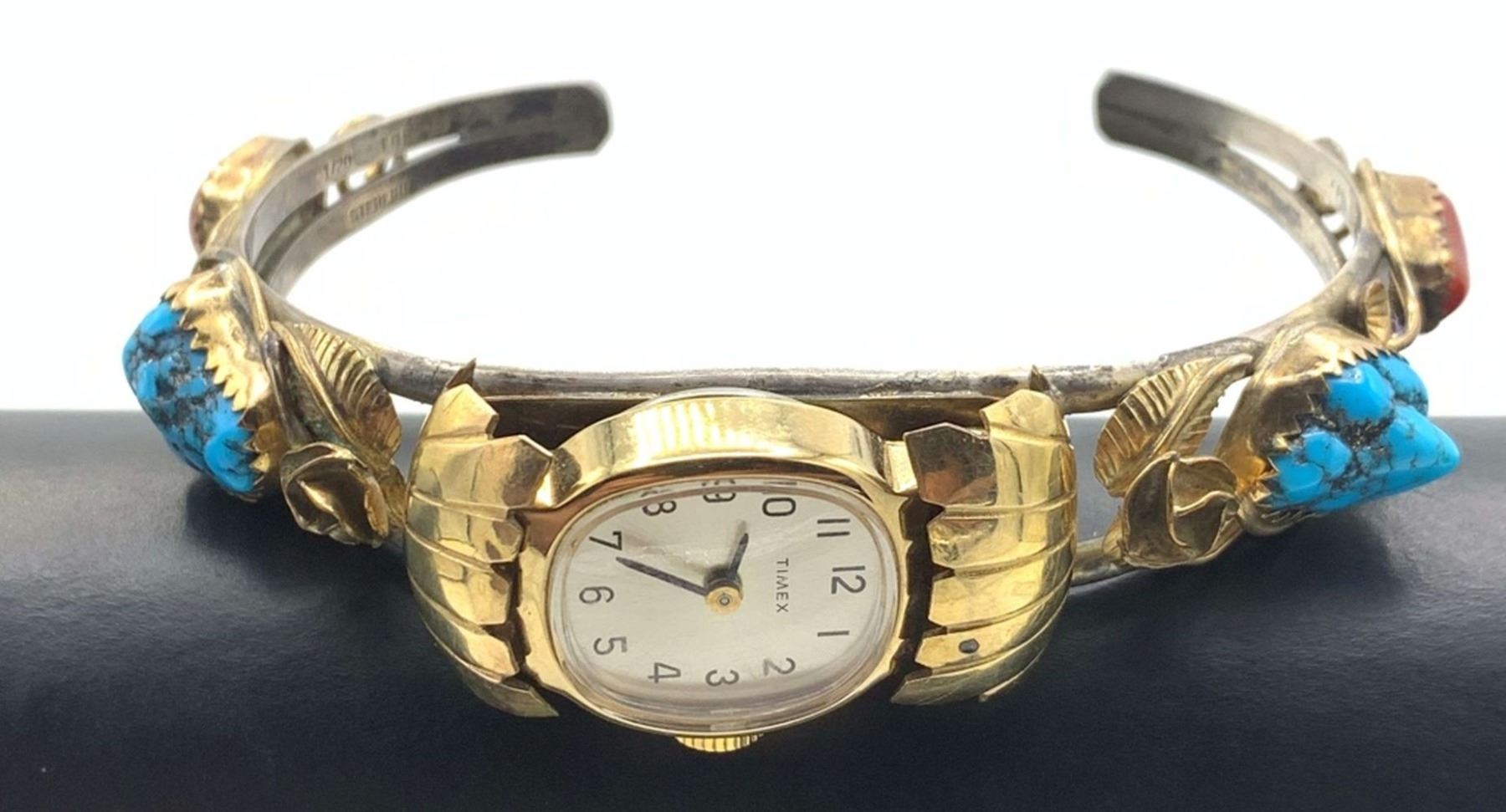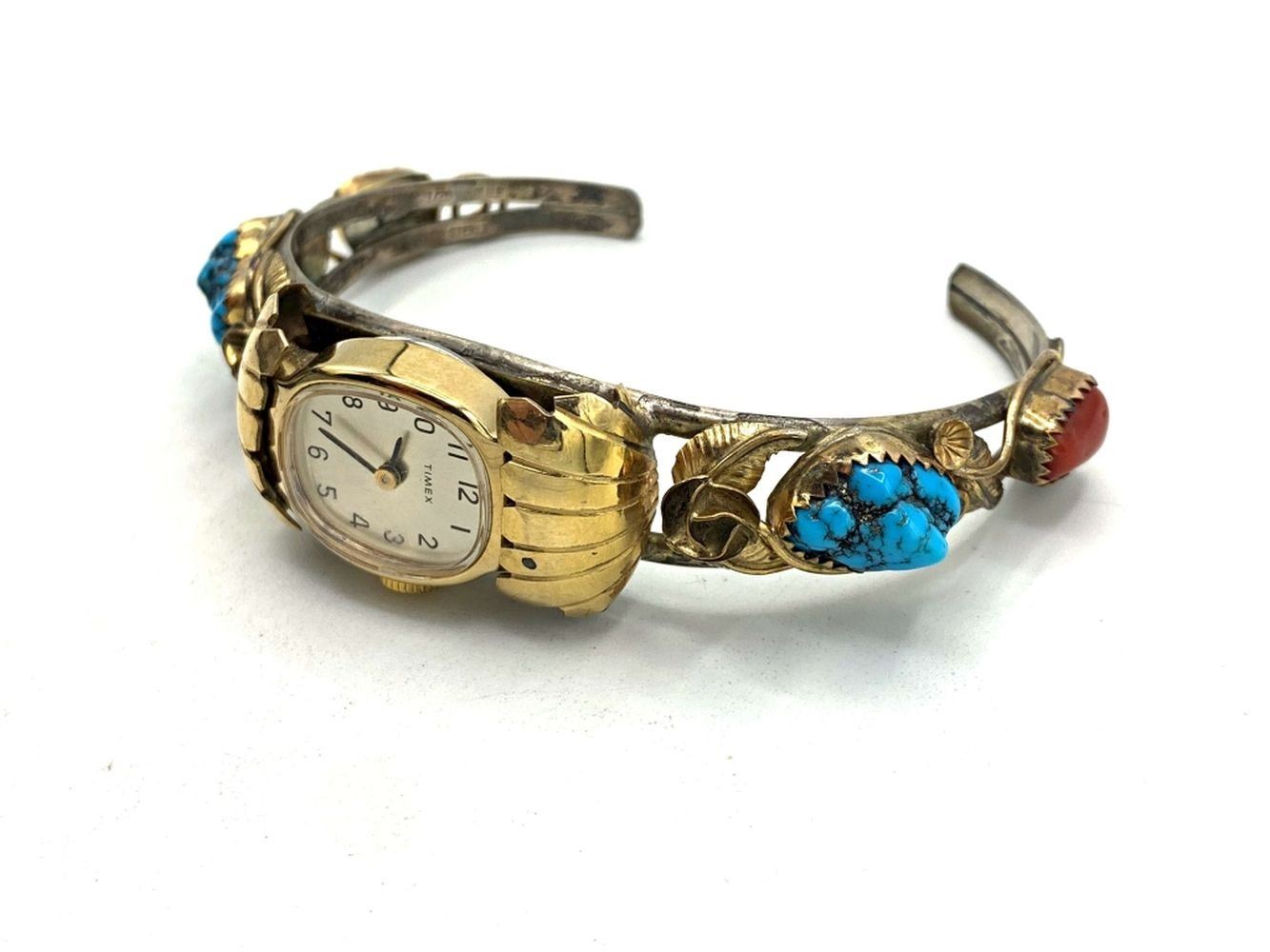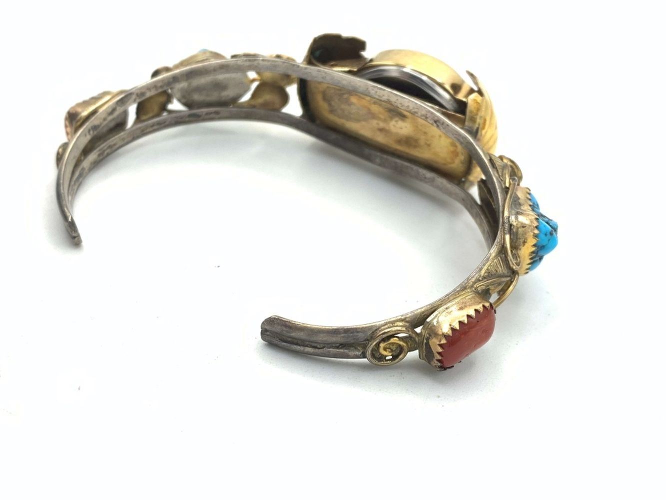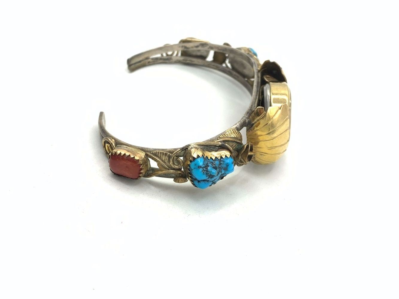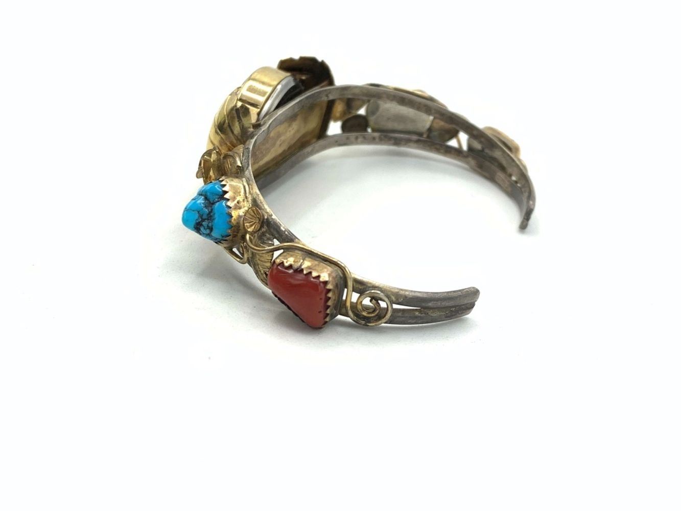 RED CORAL AND TURQUOISE STONE ACCENTS ARE SIDE-GODL FILLED FLORAL ACCENTS. 16.4 DWT TOTAL