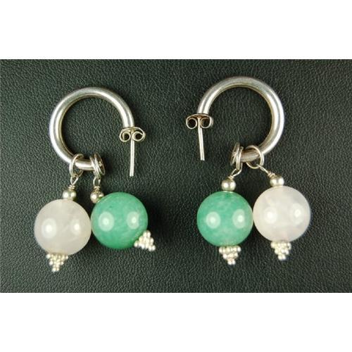 STERLING SILVER HOOP EARRINGS with Pink Quartz, and Green Quartz interchangeables.