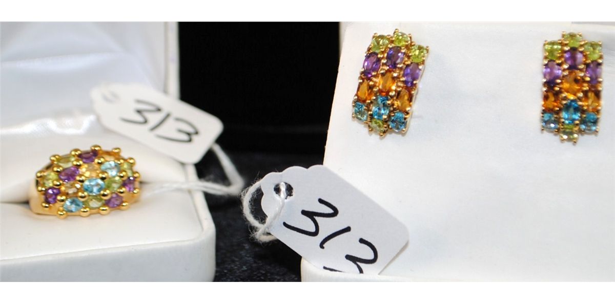 STERLING MULTI-COLORED RING AND EARRINGS - SOLD PER SET TIMES 2