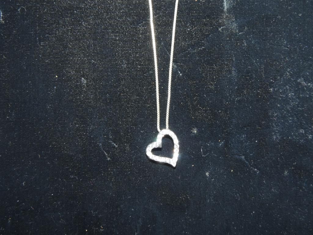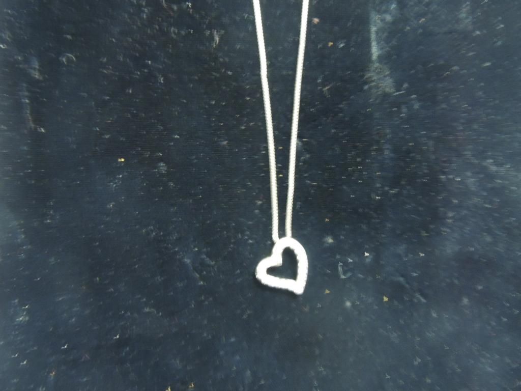 BEAUTIFUL NECKLACE STERLING SILVER NECKLACE RHINESTONE HEART PENDENT NECKLACE AS SHOWN SEE PHOTO FOR MORE DETAILS.