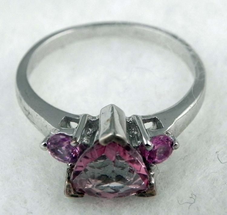 STERLING PLATINUM RING * Gemstone: ROSE DE FRANCE AMETHYSTTotal carat weight: 1.24Size: Approximately 18 mm inner diameter
