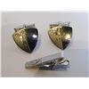 STERLING SHIELD SHAPE CUFFLINKS AND TIE CLIP