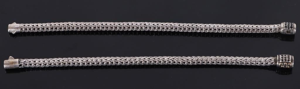 Sterling silver 18K gold onyx chained bracelet to include one sterling silver bracelet w/ nine 0.01ct round cut onyx, and one sterling silver bracelet w/ spot gold and ten 0.02ct round cut onyx.