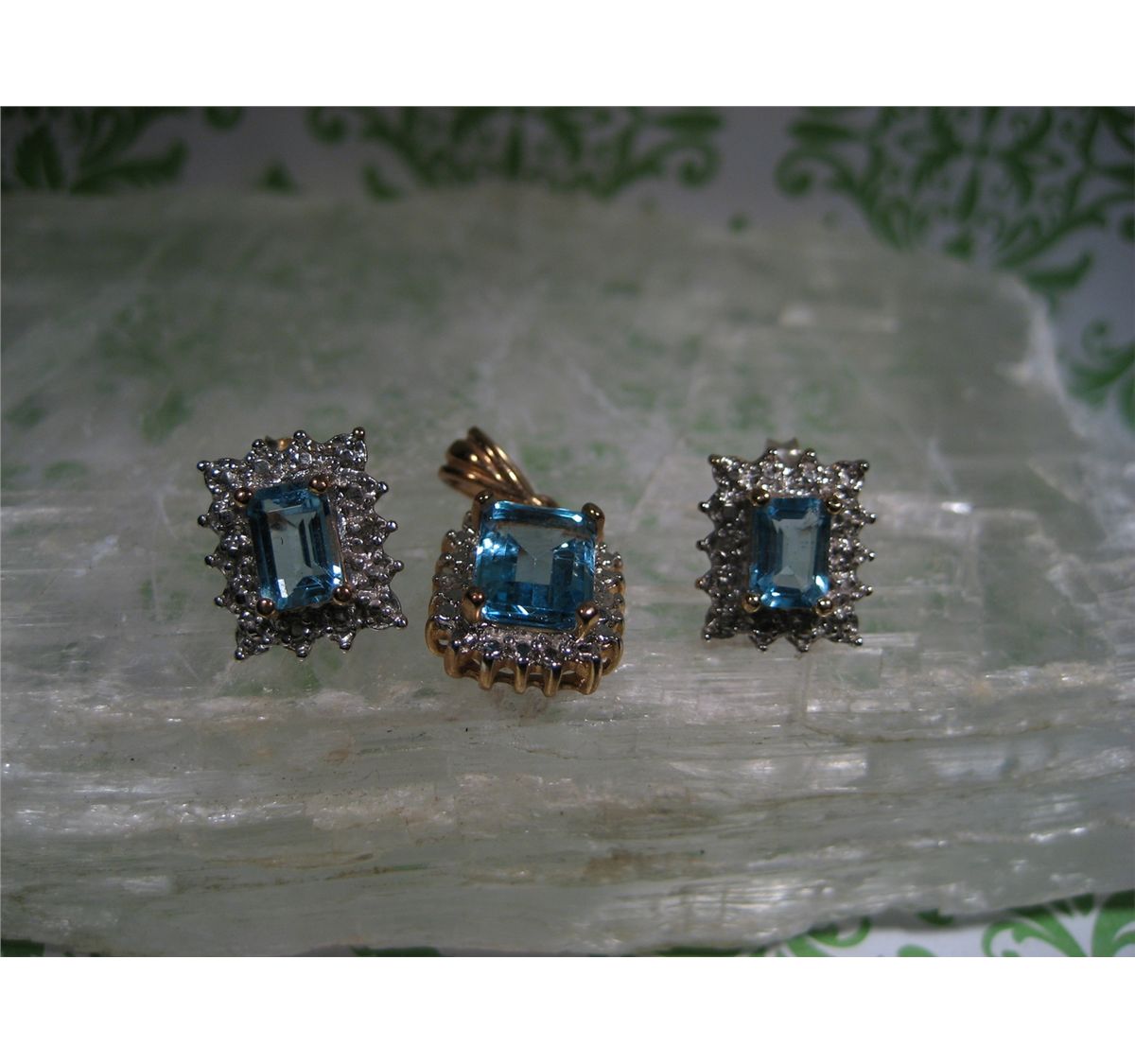 (3) STERLING SILVER 3 PIECE SET NECKLACE AND EARRINGS WITH LIGHT BLUE STONE T.W. 4.9 GRAMS