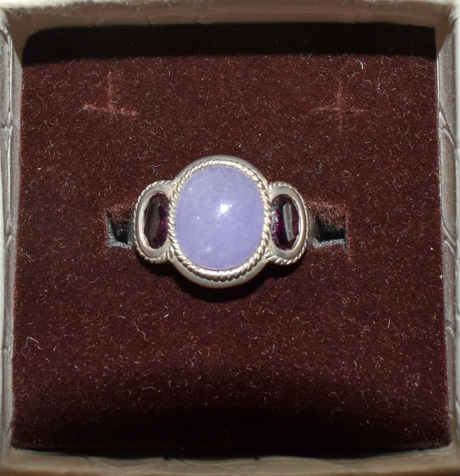 STERLING SILVER .925 GARNET/PURPLE JADE RING SIZE