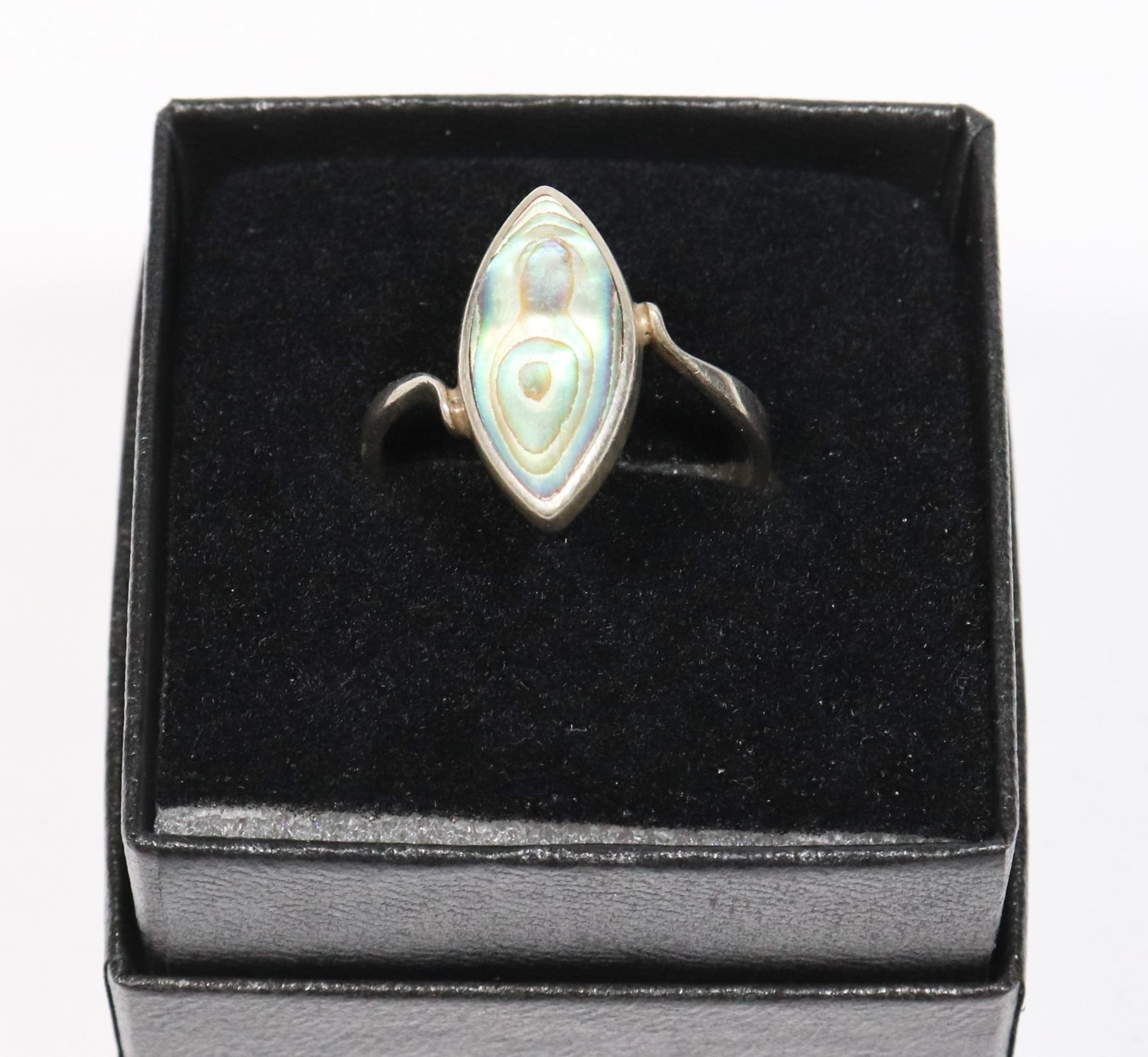 STERLING SILVER ABALONE SHELL GEMSTONE RING