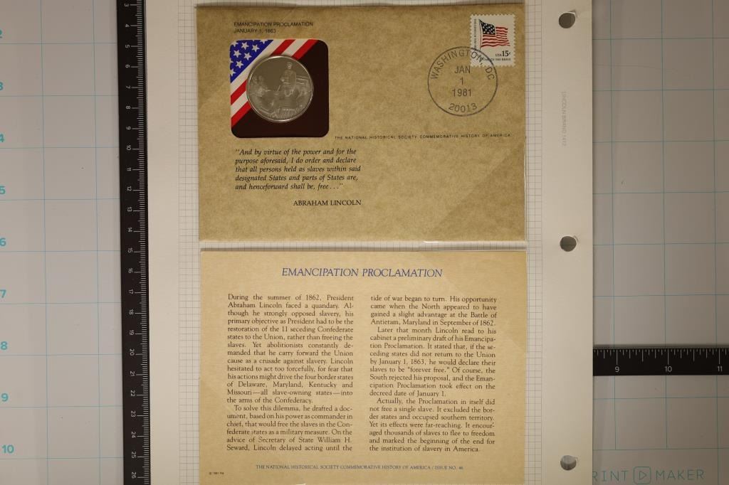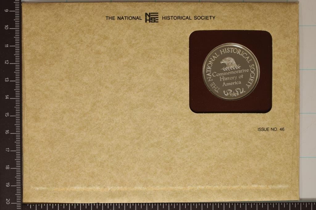 NATIONAL HISTORICAL SOCIETY COMMEMORATIVE HISTORY OF AMERICA / ISSUE NO. 46 FIRST DAY COVER WITH INFO SHEET, THE MEDAL IS IN PROOF CONDITION