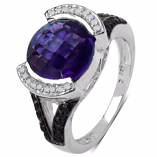 STERLING SILVER AFRICAN AMETHYST AND BLACK DIAMOND RING