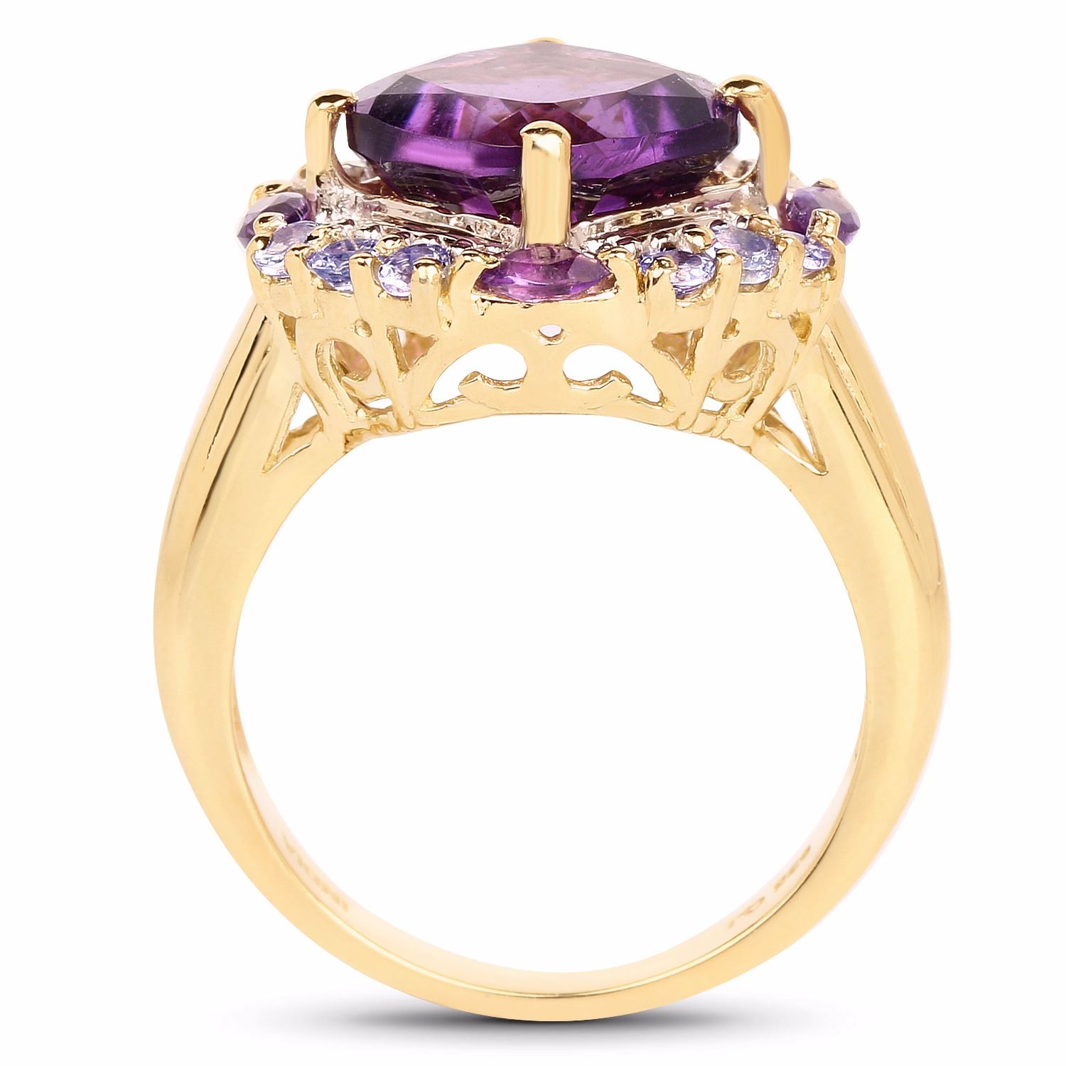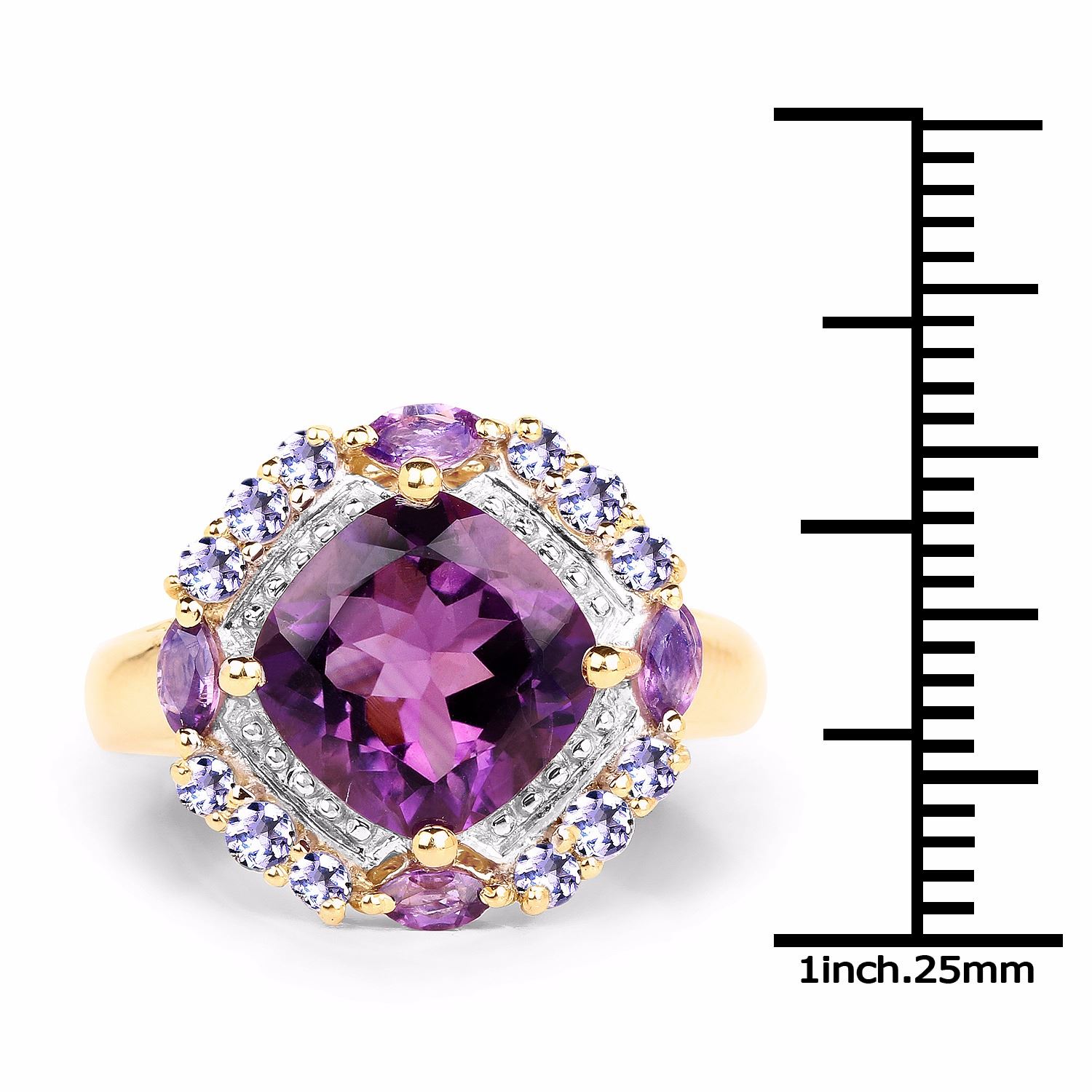 Gemstone Description: African Amethyst Cushion 10.00mm - 1Pc + African Amethyst Marquise 4x2mm - 4Pcs + Tanzanite ( A-A+ ) Round 2.20mm - 4Pcs + Tanzanite ( A-A+ ) Round 1.90mm - 8Pcs ( White Pan Rhodium Plating )