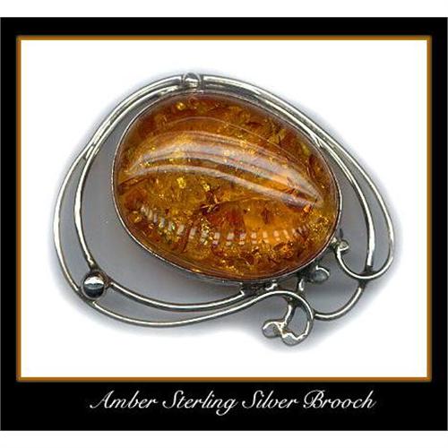 If you are REALLY interested in this item, please note that for Ebay Live Auction only bids at or above $100 will be successful and meet our reserve. Beautiful oval Amber hand made Sterling silver brooch in the Art Nouveau design. Excellent condition, dimension : 2-5/8 x 1-1/5", circa 1990's