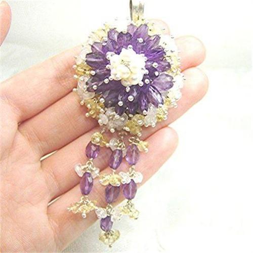 <p>Stone(s): 36 pieces top grade authentic AMETHYST, 60 pieces authentic MOONSTONE, 50 pieces authentic CITRINE, 12 pieces SALT WATER PEARLS