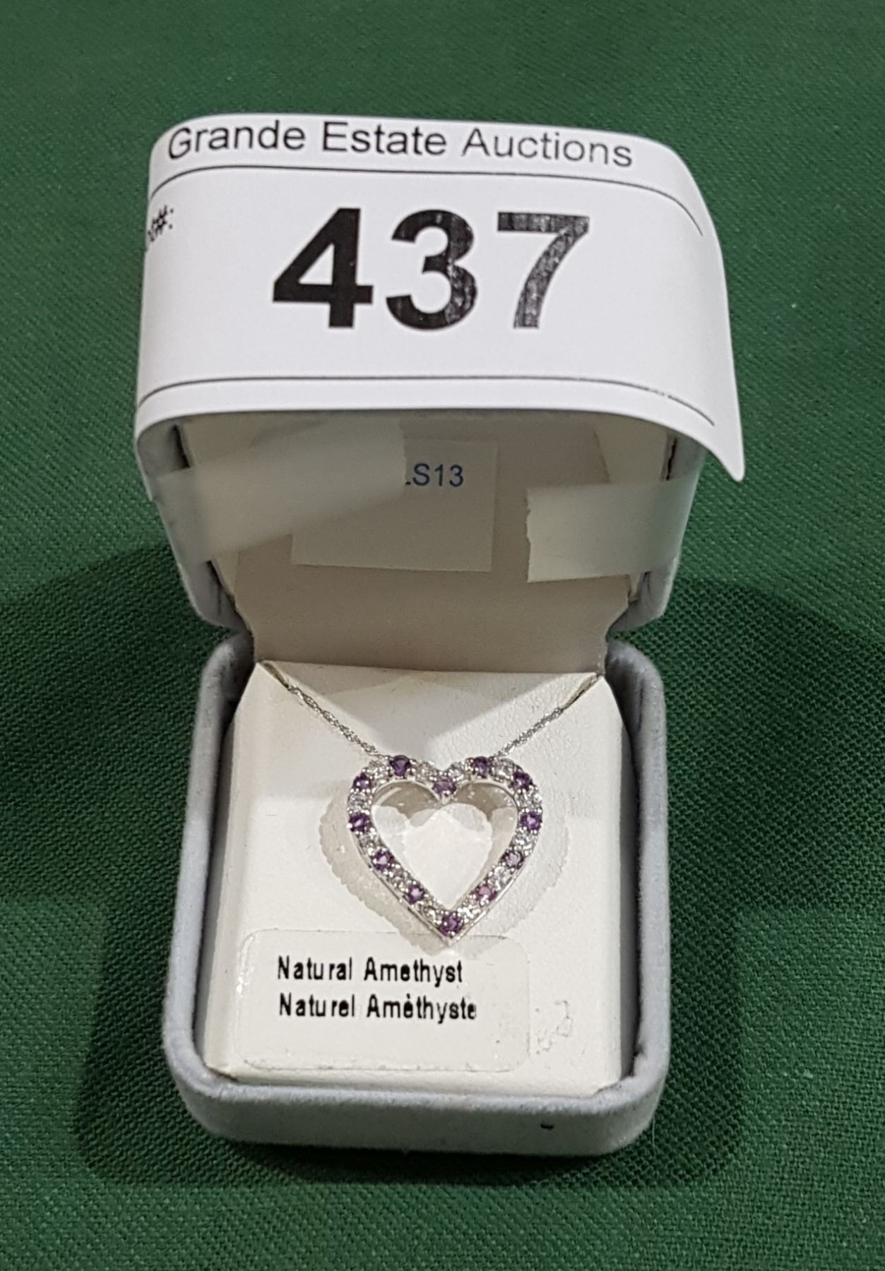 STERLING SILVER AMETHYST HEART PENDANT ON CHAIN