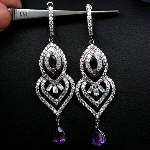 STERLING SILVER AMETHYST, SAPPHIRE & TOPAZ EARRINGS
