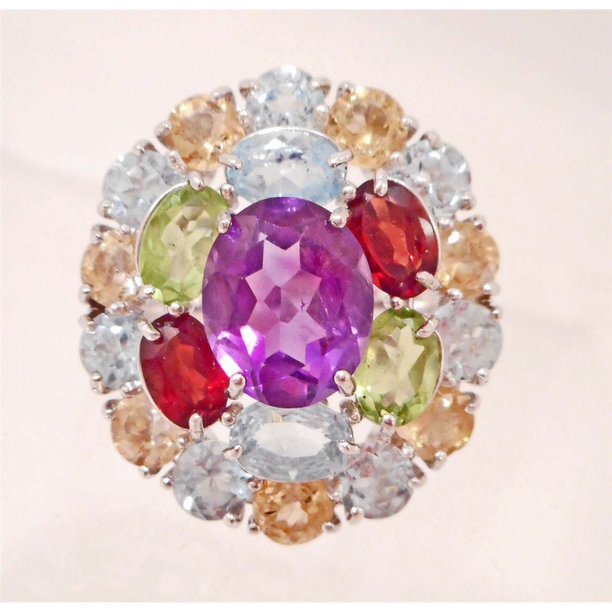 STERLING SILVER AMETHYST, TOPAZ, GARNET RING