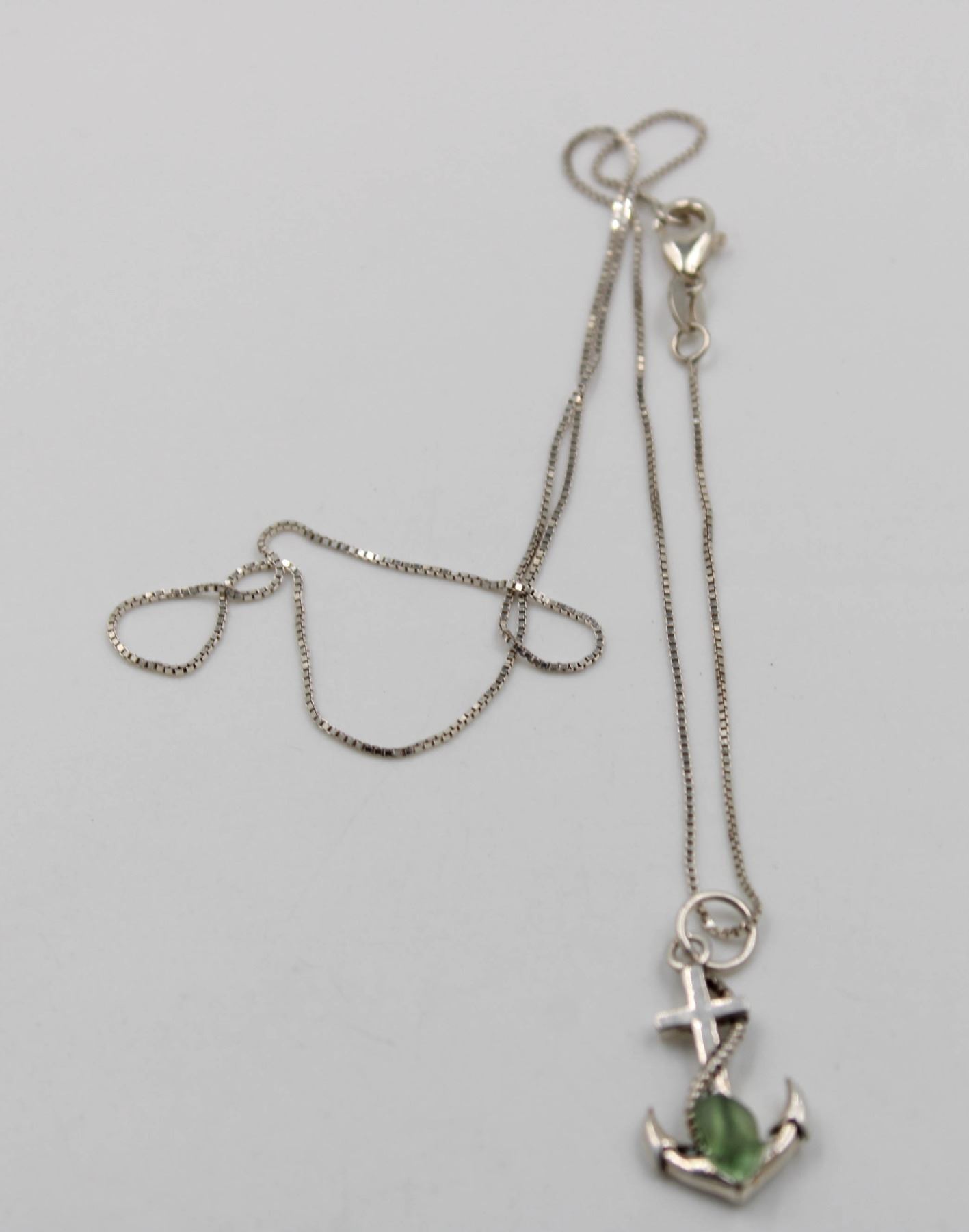 STERLING SILVER ANCHOR AND CHAIN WITH SEA GLASS