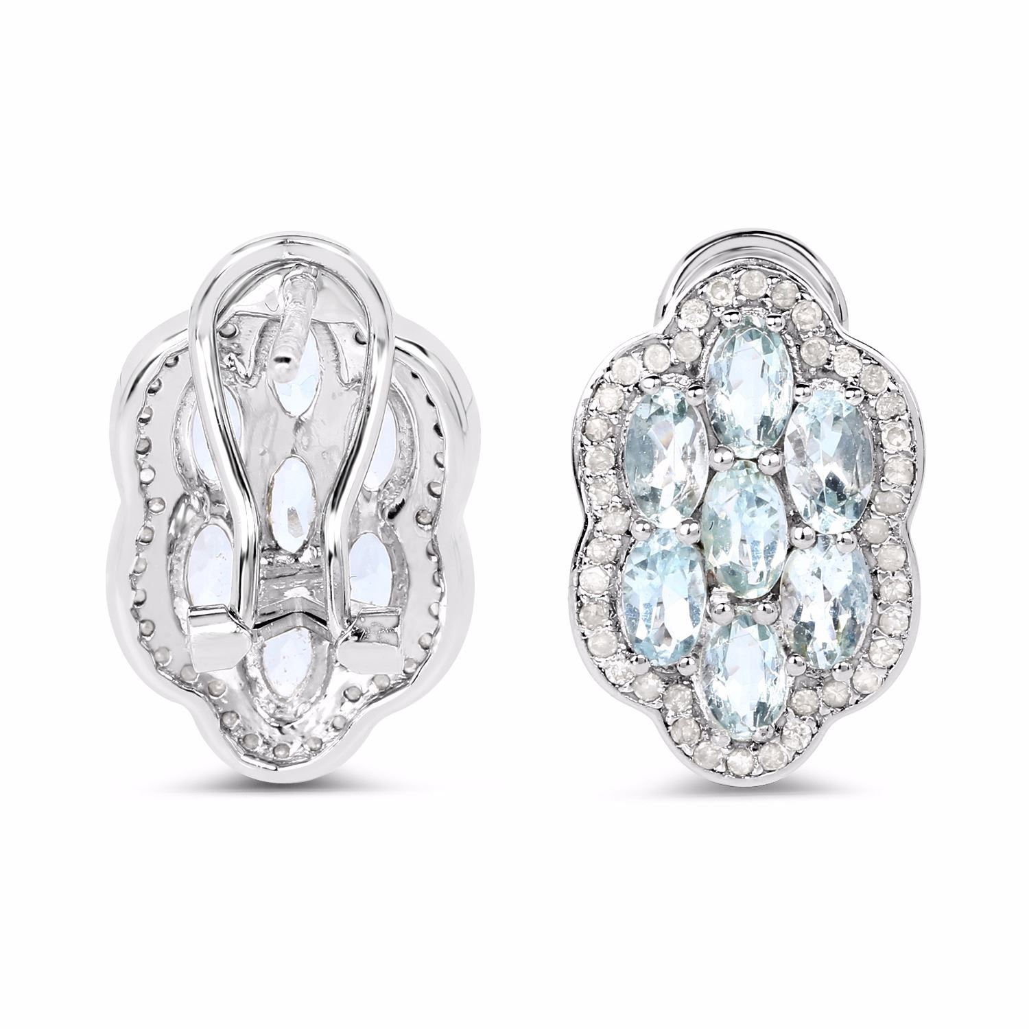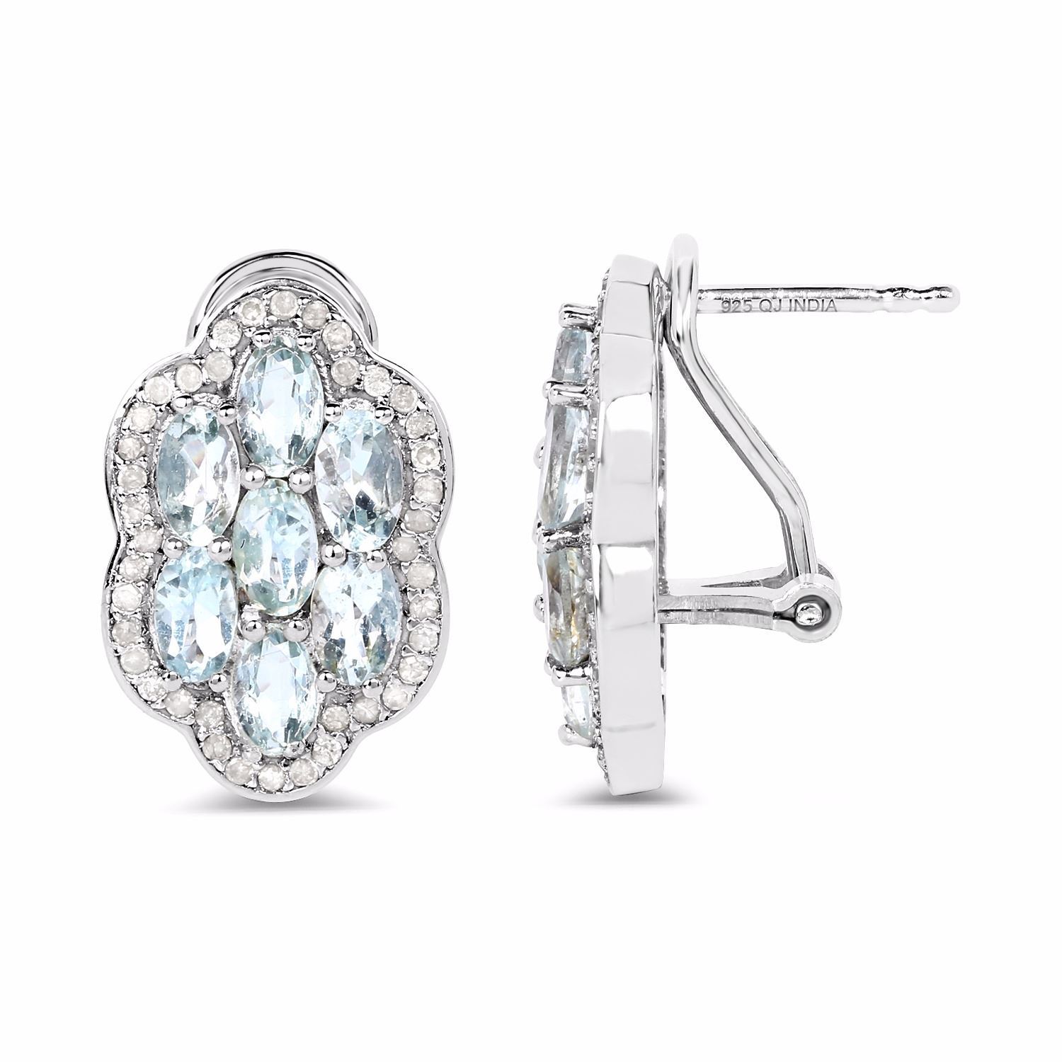 STERLING SILVER AND AQUAMARINE DIAMOND EARRING