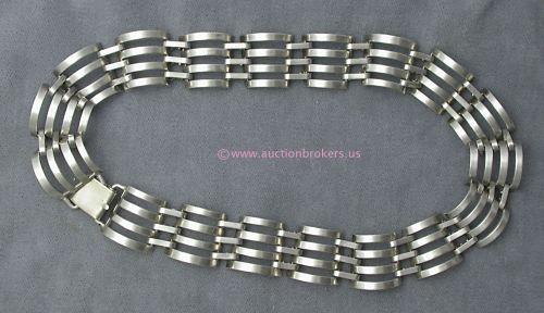 STERLING SILVER ART DECO STYLE LINK CHOKER NECKLACE 14 INCHES. 62.8 GRAMS.