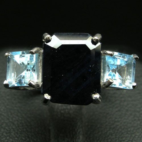 STERLING SILVER BLUE SAPPHIRE & BLUE TOPAZ RING SZ 7.5
