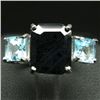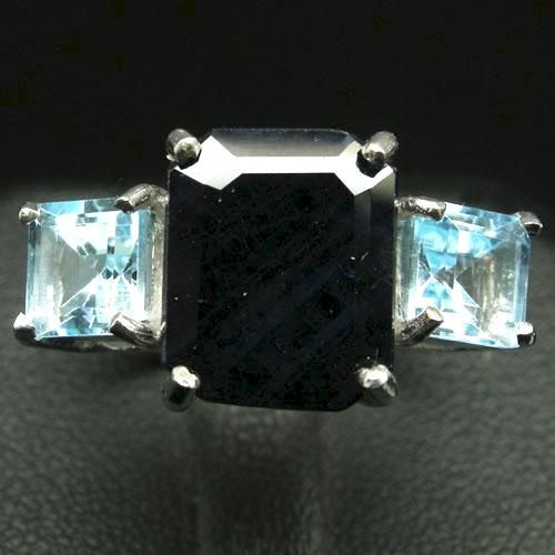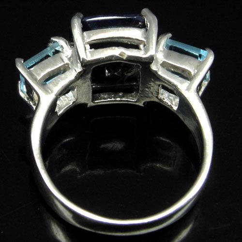 STERLING SILVER BLUE SAPPHIRE & BLUE TOPAZ RING SZ 7.5