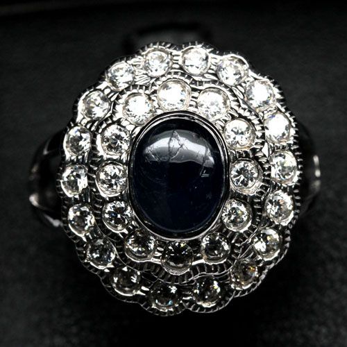 STERLING SILVER BLUE SAPPHIRE RING - SIZE 9