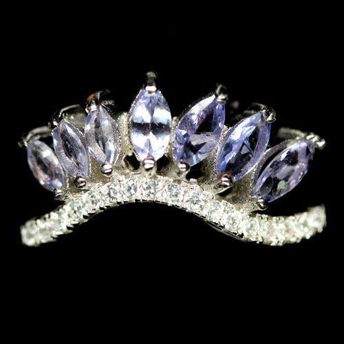 STERLING SILVER BLUE TANZANITE LADIES RING - SIZE 8.5