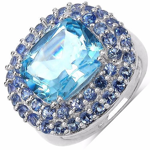 STERLING SILVER BLUE TOPAZ AND TANZNAITE RING