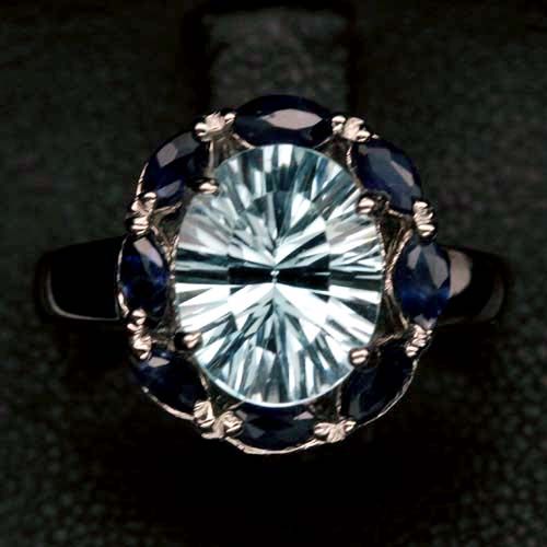 STERLING SILVER BLUE TOPAZ & BLUE SAPPHIRE RING SZ 6.5
