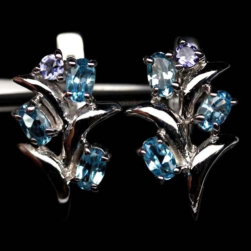 STERLING SILVER BLUE TOPAZ & IOLITE EARRINGS