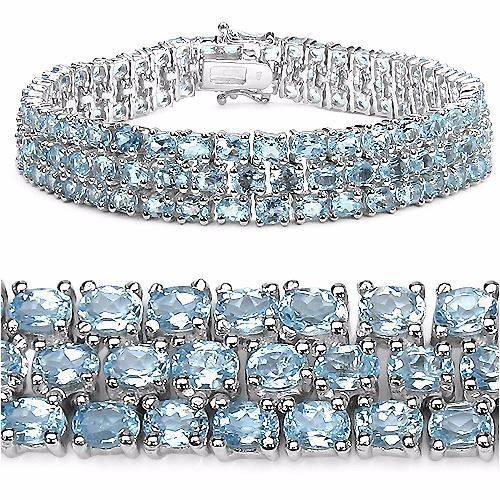 STERLING SILVER BLUE TOPAZ TRIPLE ROW BRACELET