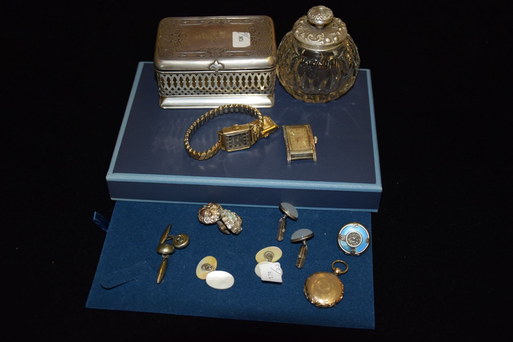 STERLING SILVER BOX & JAR, VINTAGE WATCHES (3), LOCKETS (2) & CUFF LINKS (4 PAIR) (11 PCS)