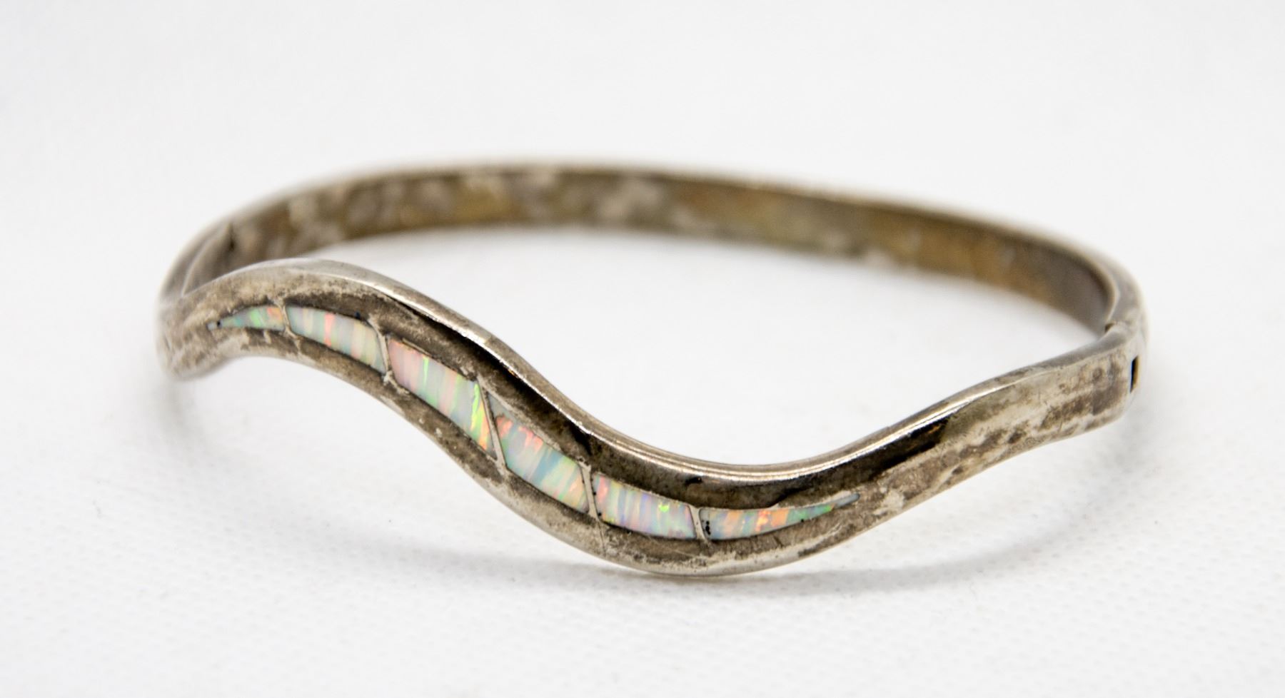 STERLING SILVER BRACELET WITH WHITE INLAY