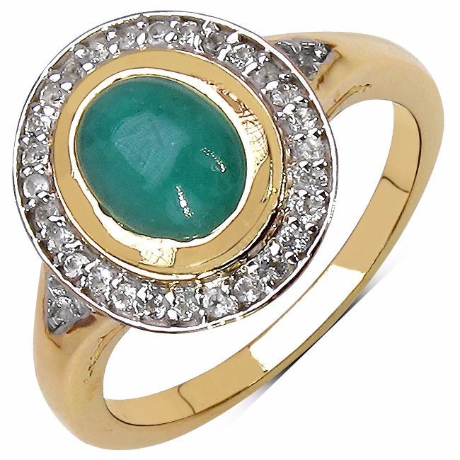 Gemstone Description: Brazilian Sakota Emerald Cabochon Oval 8x6mm - 1Pc + White Topaz Round 1.10mm - 28Pcs + White Topaz Round 1.00mm - 6Pcs ( White Pan Rhodium Plating )